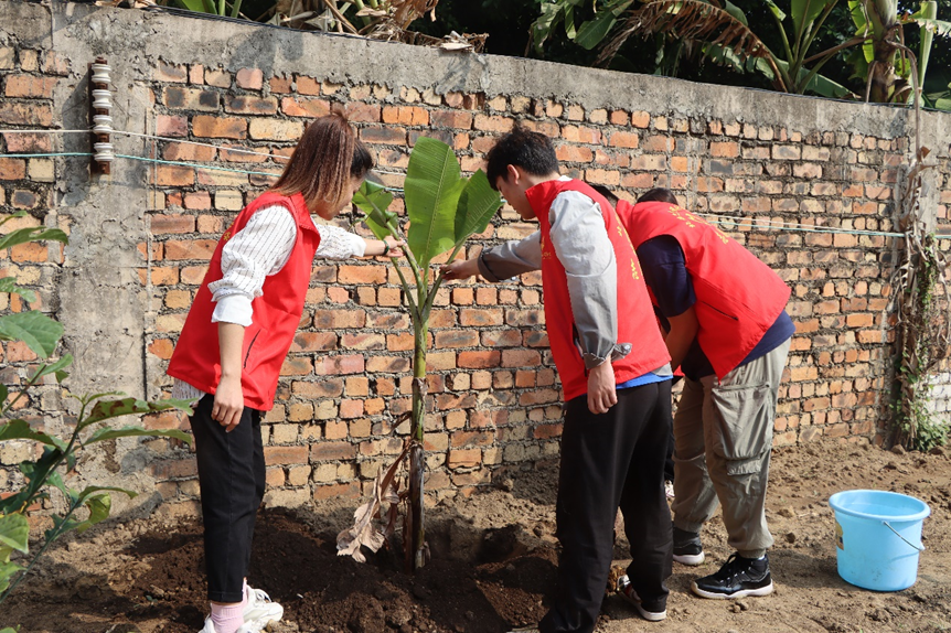 整个现场呈现出一片热火朝天的景象,大家种下了几十棵小树苗。