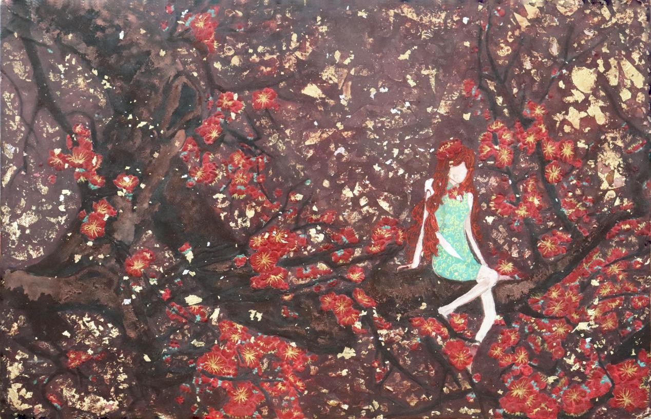 《花觅》之梅花 柯钿钿岩彩 40cmX60cm 2023年