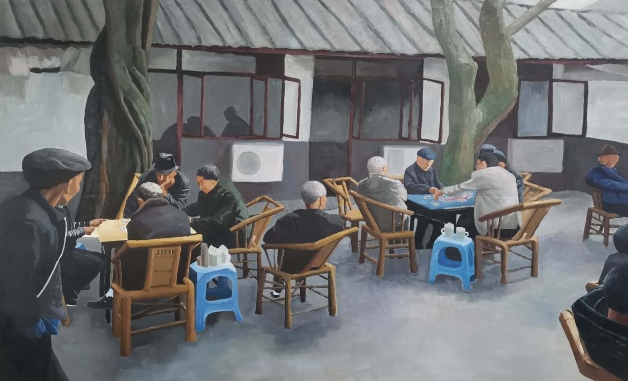 《重庆茶馆》 徐进 布面油画 130cmx150cm 2022年