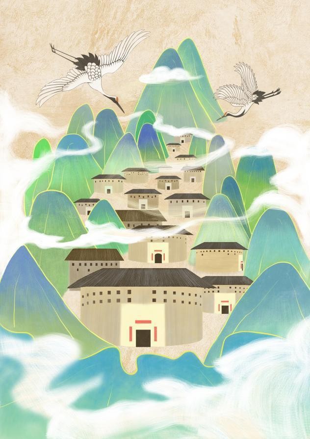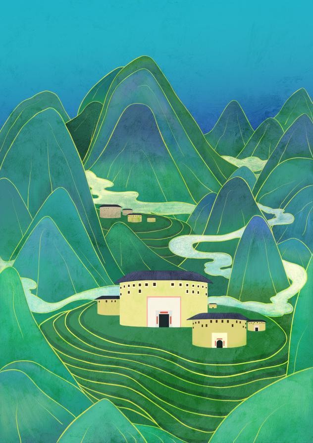 《青山秀色 土楼永恒》 林晓倩 板绘 A3 300PI 2023年