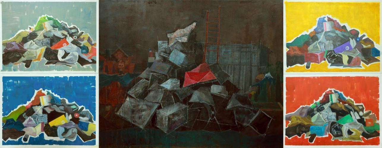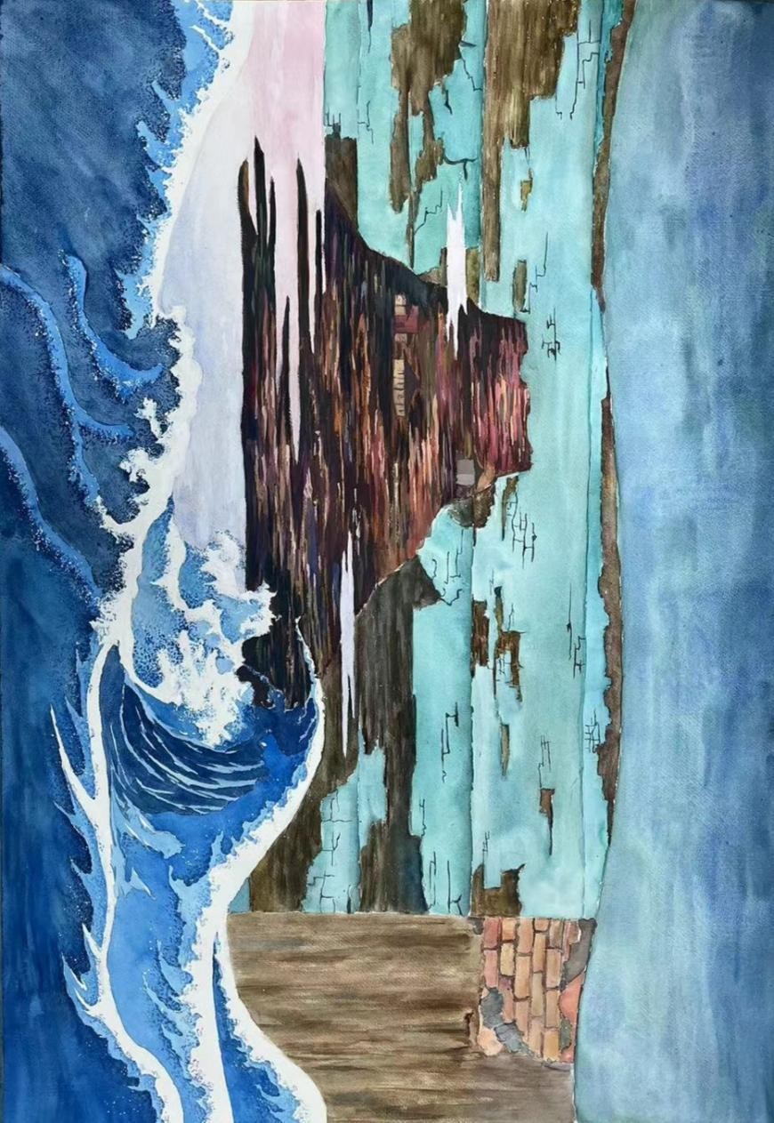《堆叠》 徐妹丁 水彩+综合材料 100cm×90cm 2023年