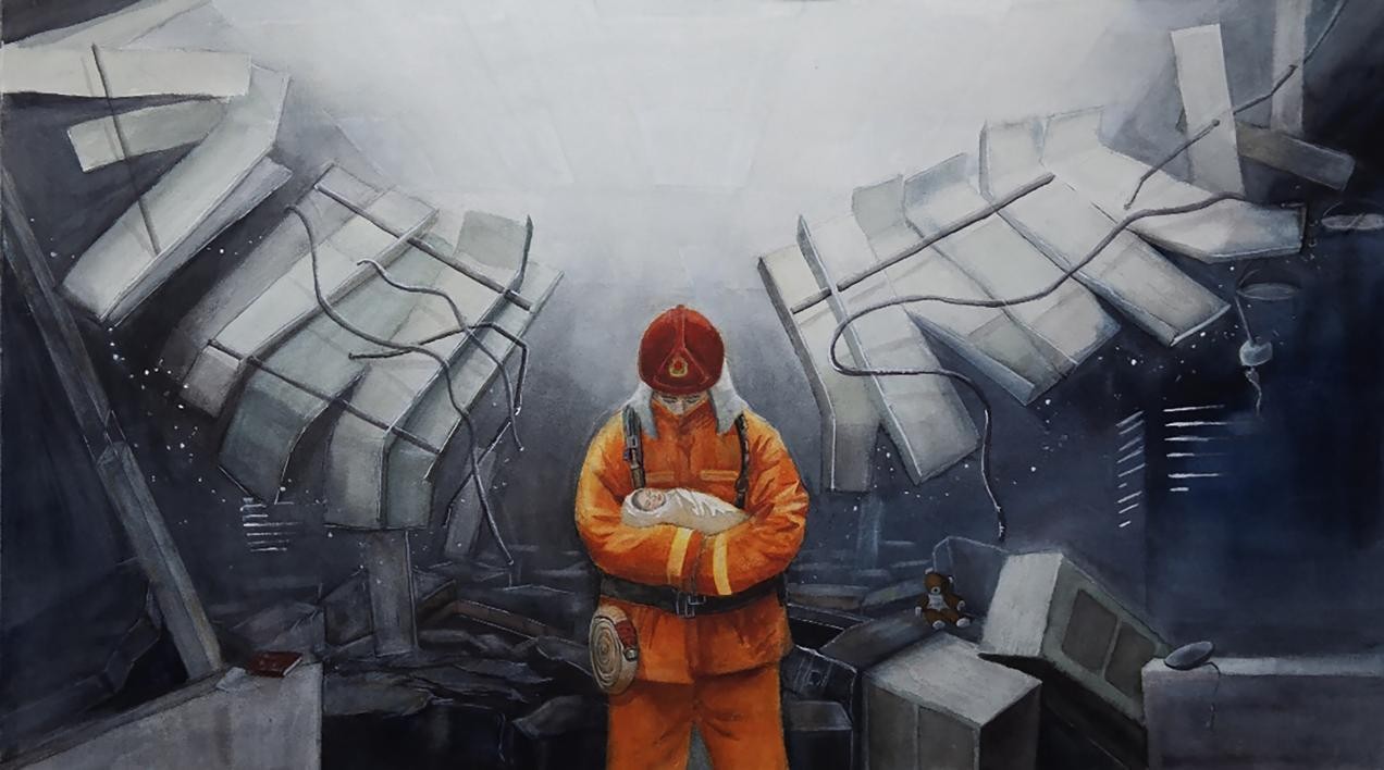 《人民守护者》 黎廷可 水彩 75cm×75cm 2023年
