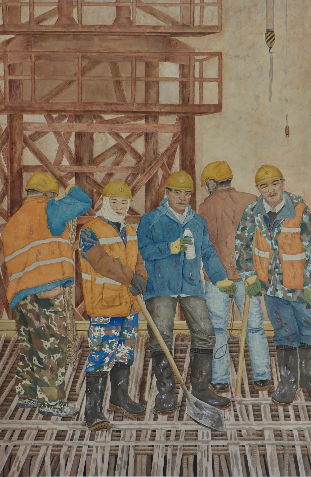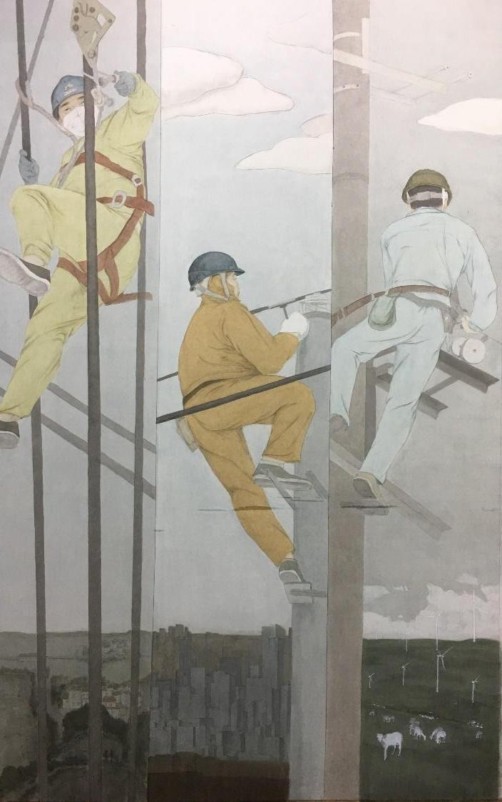 《高空作业》 何琪昌 纸本设色 120cm×190cm2023年