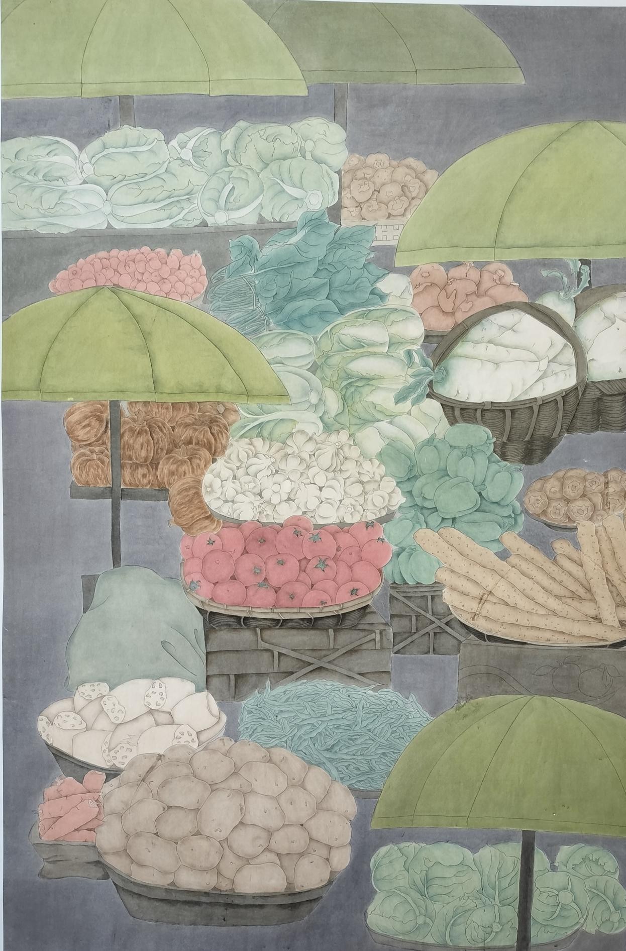 《菜场一角》 张乔乔 工笔花鸟120cm×185cm 2023年