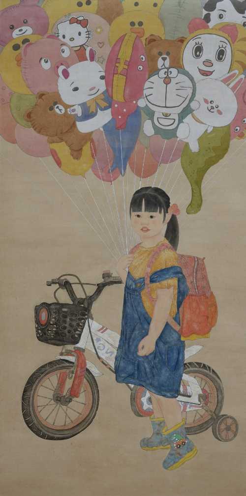 《童·颜》 刘学梅 工笔人物93cm×185.5cm2023年