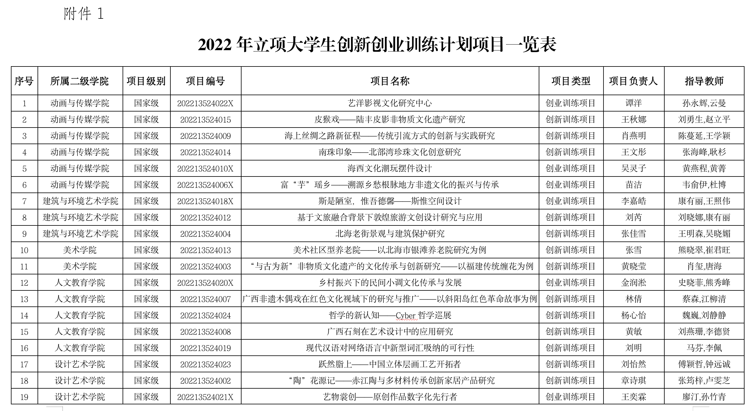 (三)请各二级学院对照《2022年立项大学生创新创业训练计划项目一览表》(附件1),通知并督促项目负责人及指导教师做好相关工作。