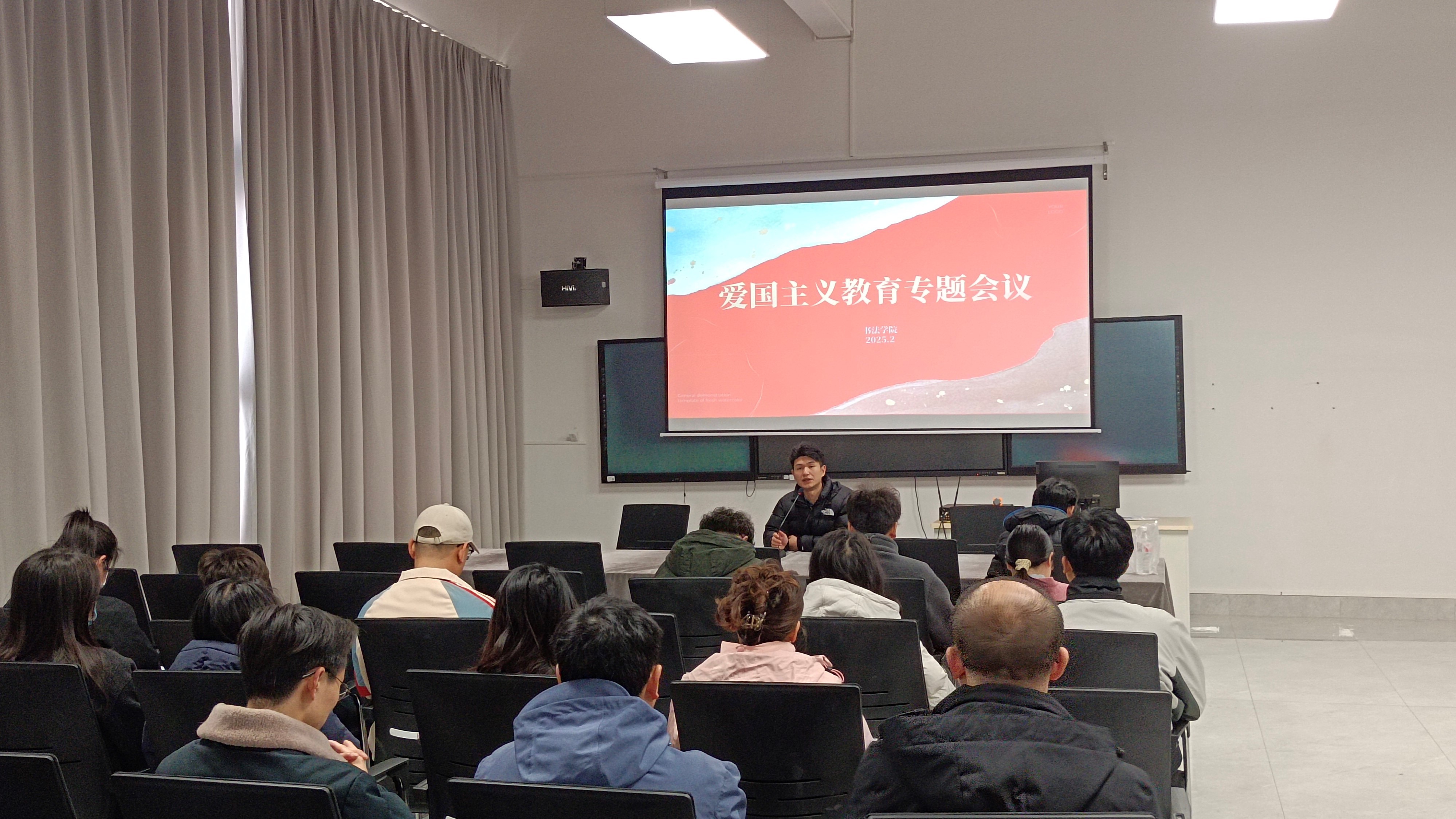本次专题会议不仅为教师们提供了宝贵的学习机会,也为书法学院进一步推进爱国主义教育奠定了坚实基础。未来,学院将继续以多种形式开展爱国主义教育活动,为培养德才兼备的新时代青年贡献力量。(卢智慧 摄)