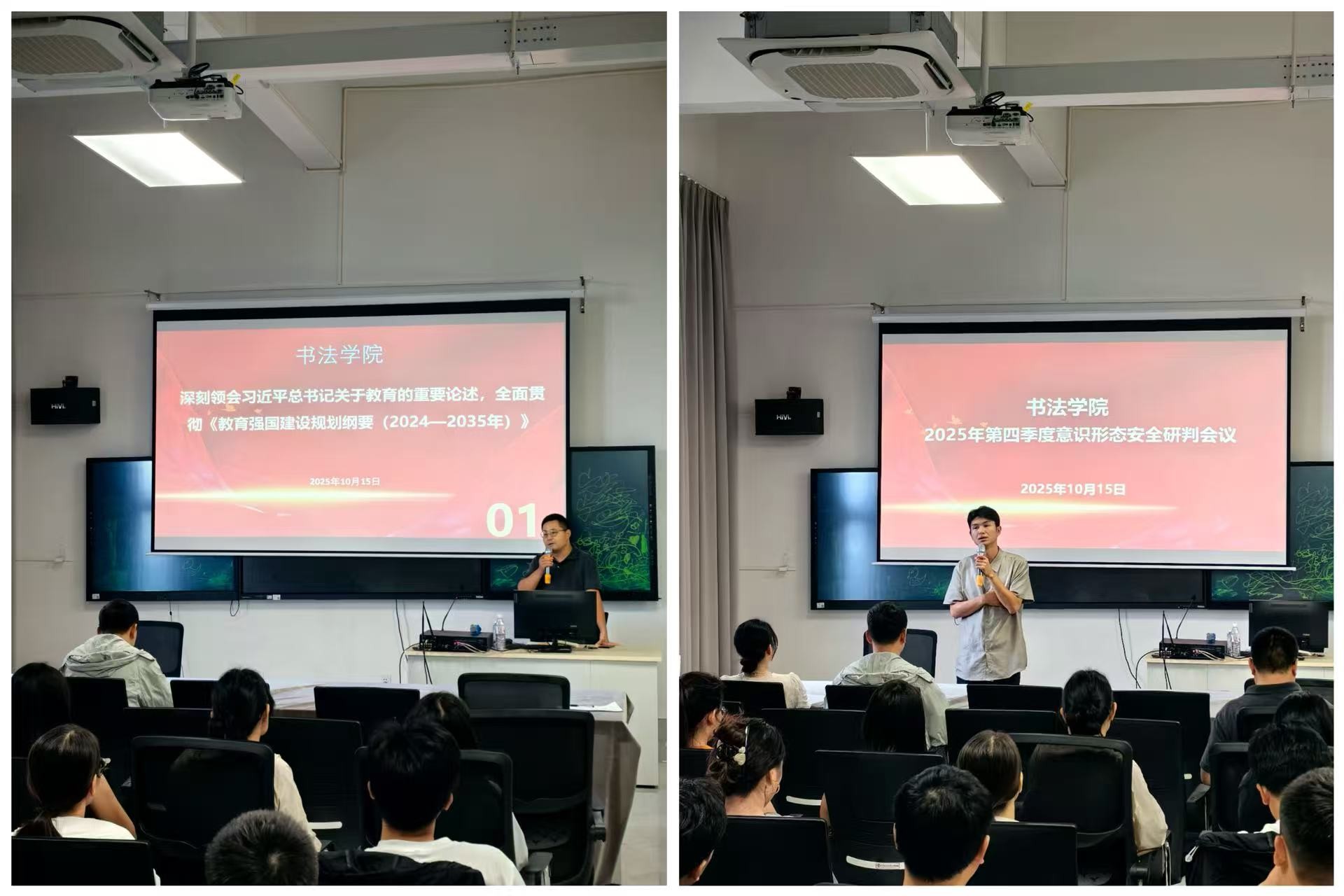 最后,党支部书记喻广林作总结发言。他指出,学院全体教师要以本次理论学习为契机,进一步提高政治站位,深化理论武装,紧密联系书法专业特色与教育教学实际,做到学思用贯通、知信行统一,切实把学习成效转化为推动学院各项工作高质量发展的具体实践与扎实成效。(张鹏 摄)
