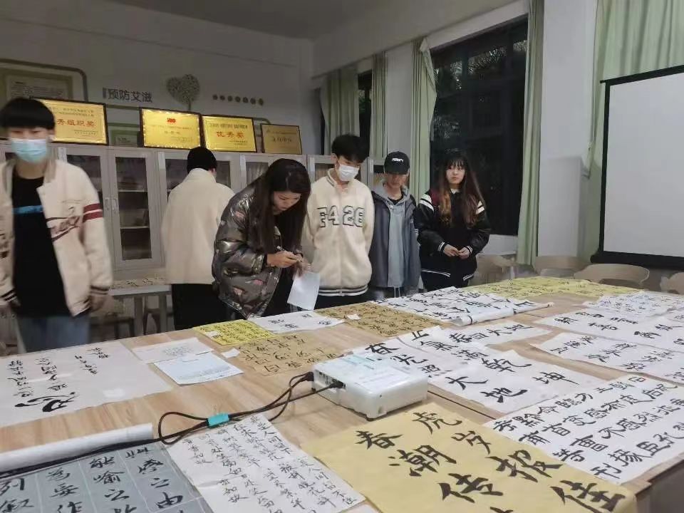 参与本次评选的有校团委副书记宋慧敏、校团委指导老师蒋志珍。每一副作品都是书法志愿者用心书写的,包含着同学们对送春联活动的支持。