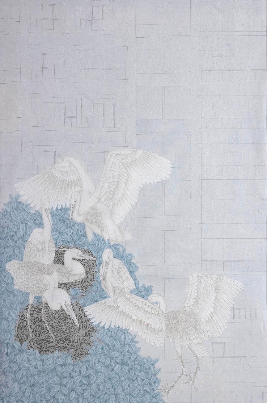 绘画 1902 班 张娜《静·行》170×120cm 工笔重彩 指导教师:陈建江