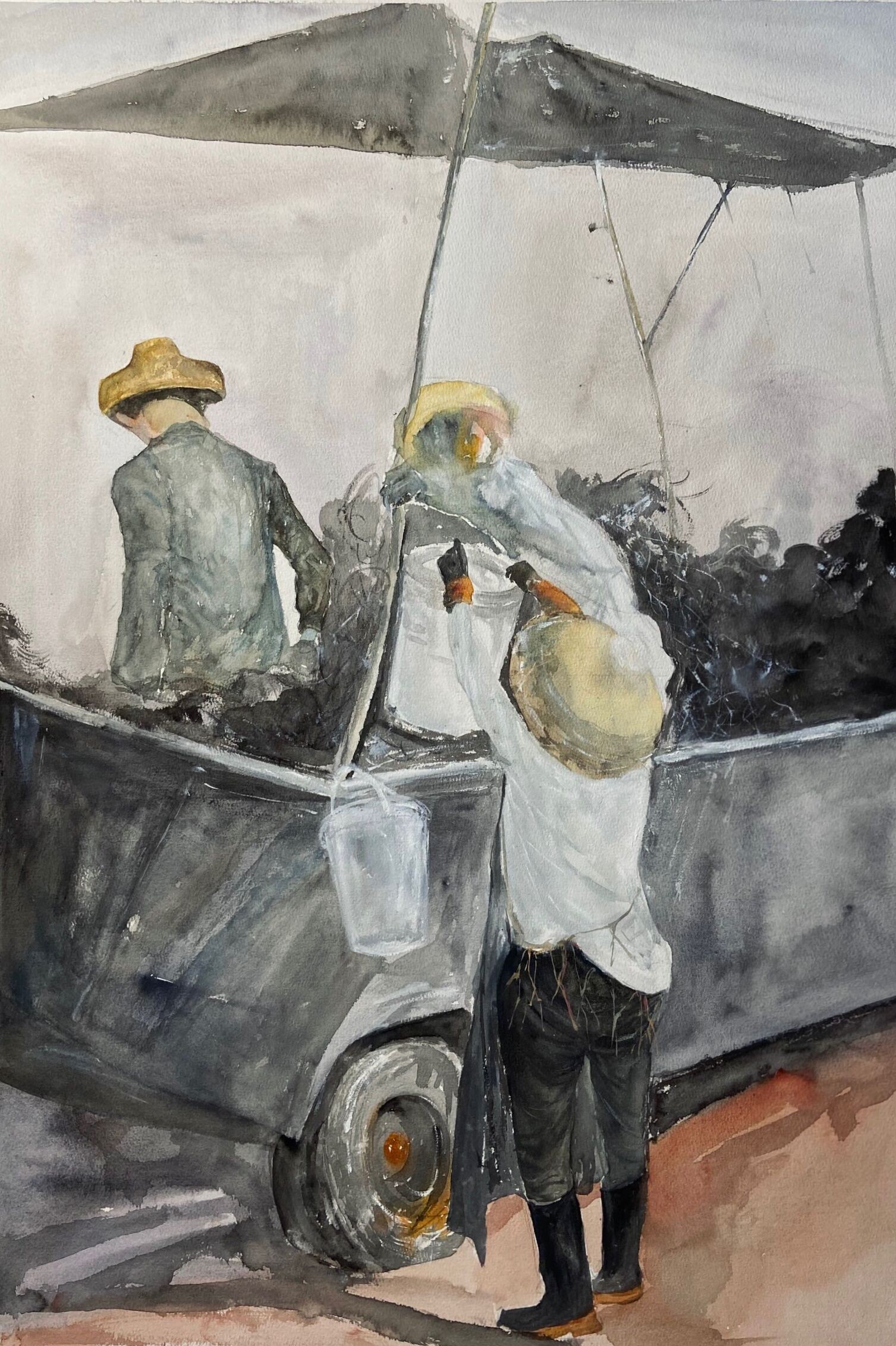 徐盼《船夫》53cm×76cm 2023年 纸本水彩
