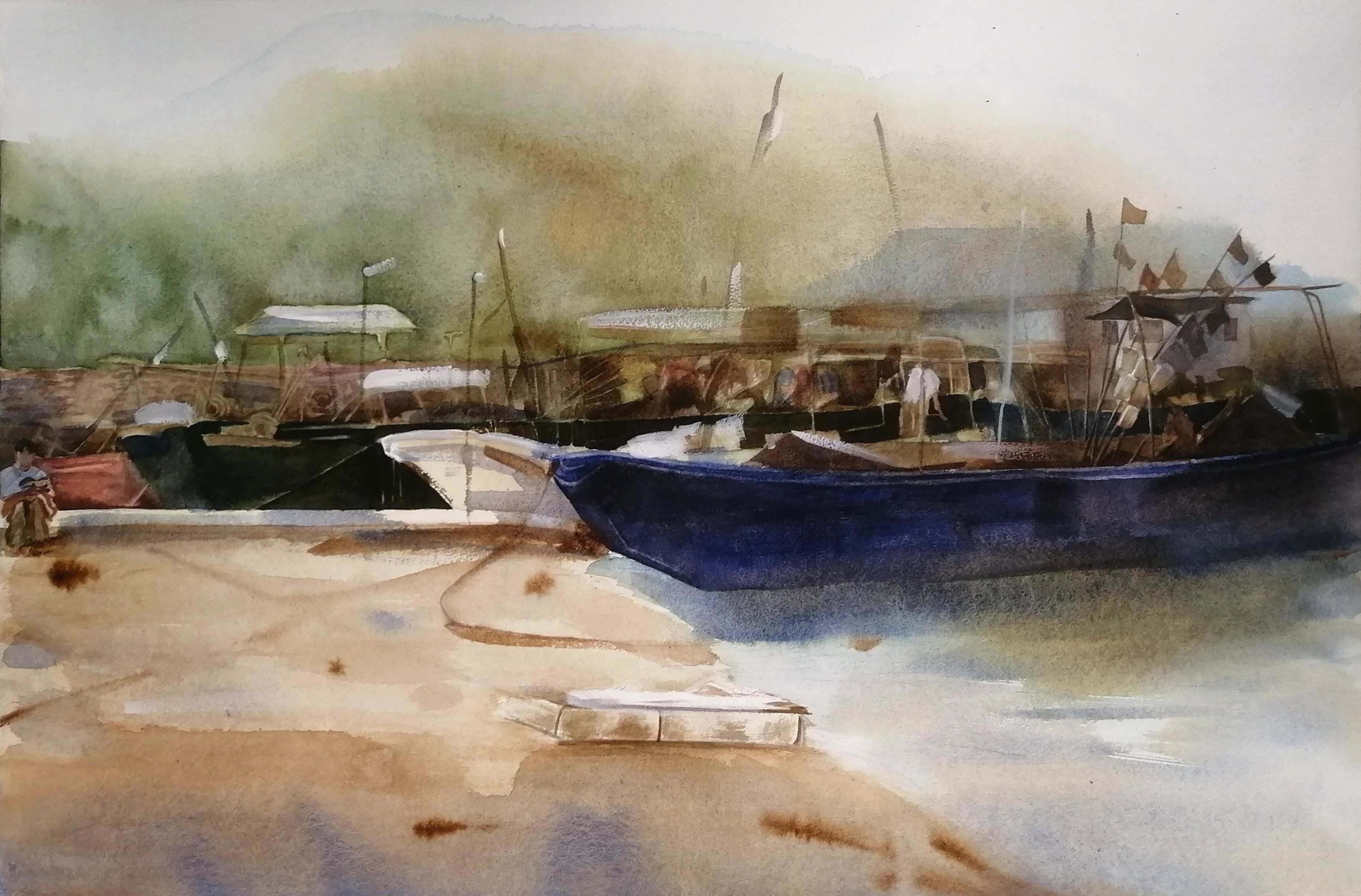 梁晓明《休渔时节》 50cm×55 cm 2023年 纸本水彩
