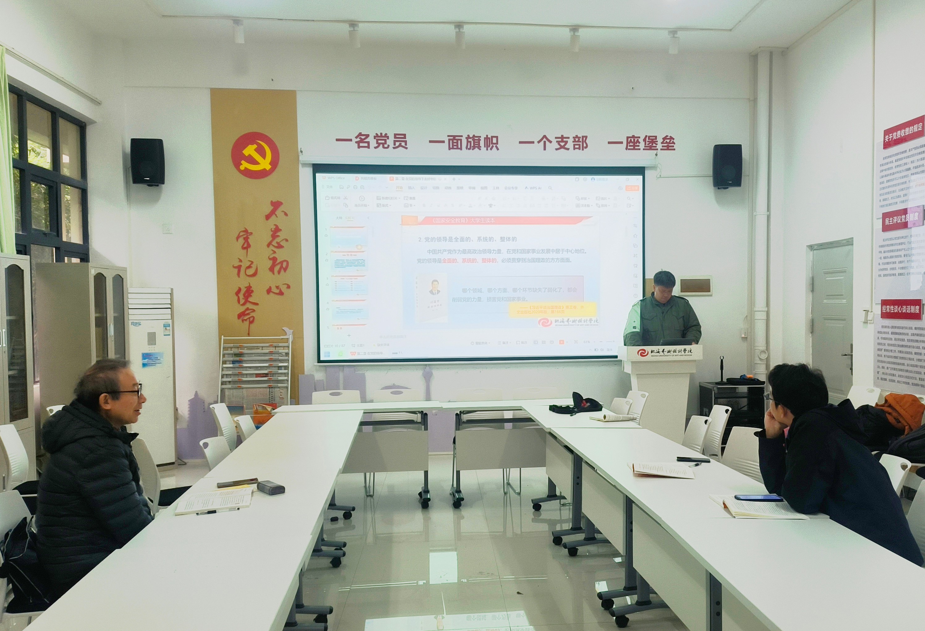 其次,杨凯老师就第一讲主要内容进行了讲解,强调第一讲作为全书全课程的开篇,起到了“总”的作用,除了要向学生介绍课程开设的意义以外,还要使得学生认识到国家安全的重要性。王瑞轩老师就第二讲主要内容进行了讲解强调第二讲的内容要抓住坚持党对国家安全工作的绝对领导这个中心思想,呼吁各位教师要根据自身专业特长,结合2024级各专业学生的特点,对课件内容作个性化的改进。