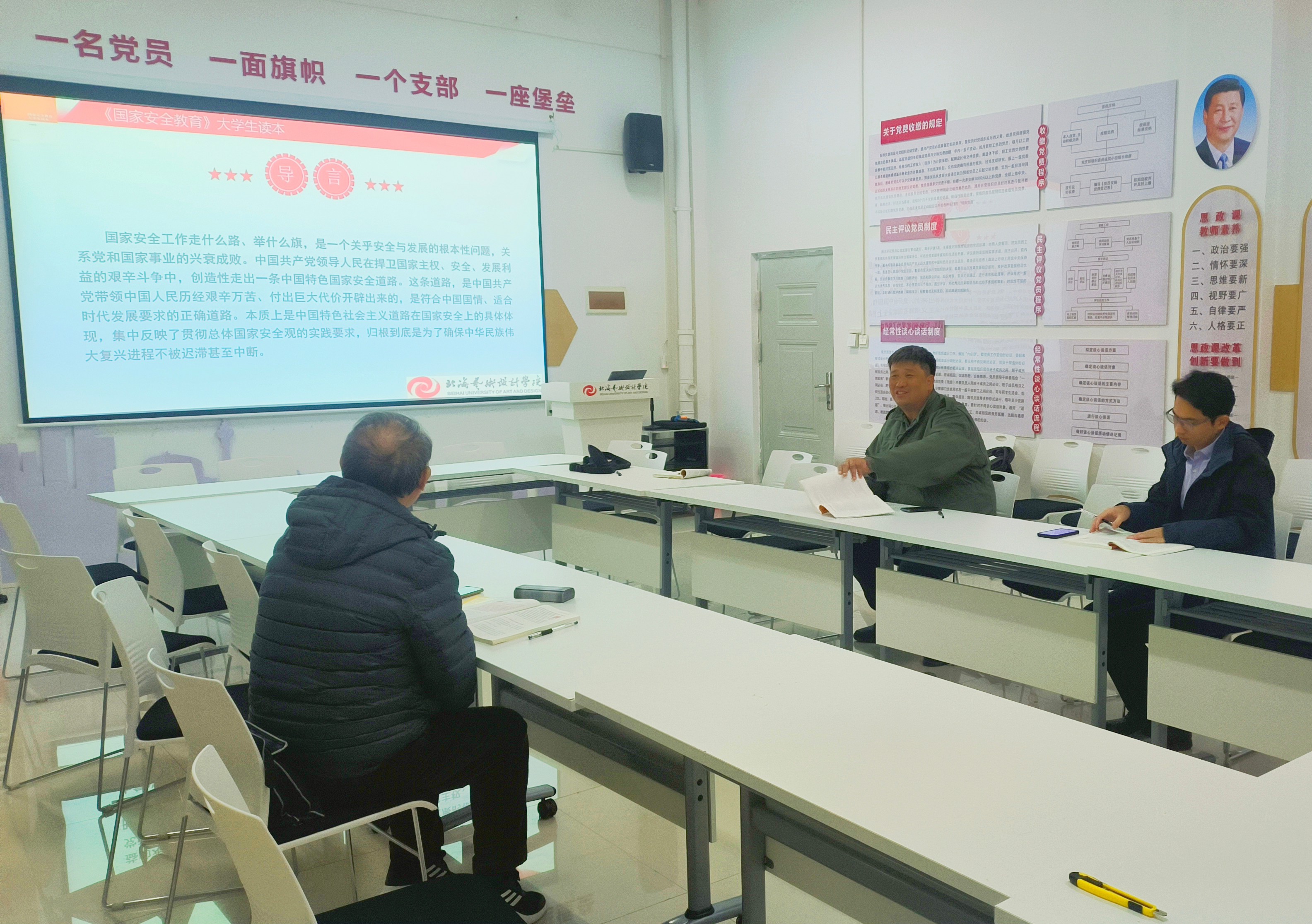 27上午国家安全教育课程组在西校区行政楼103召开了新学期集体备课会,课程组负责人胡细木主持课程全体教师参加。