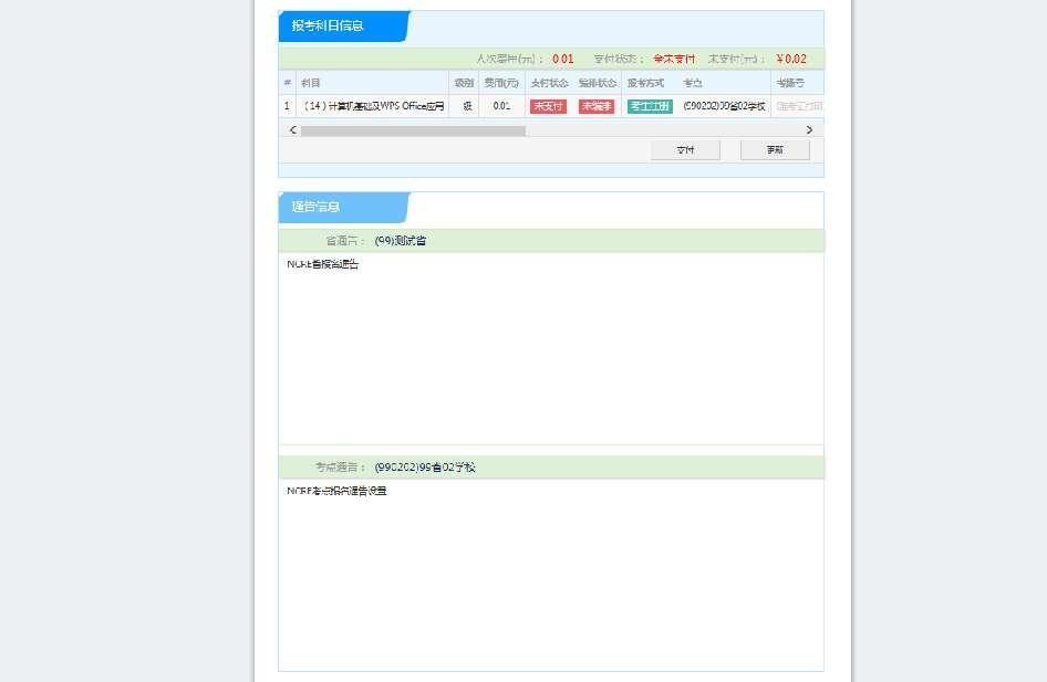 3.支付成功后报名流程完成,考生不能修改个人信息、科目信息或退考退费。