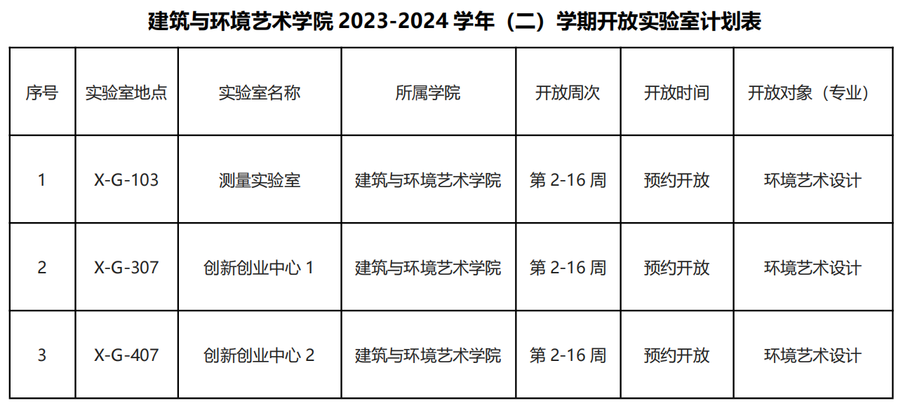建筑与环境艺术学院2023-2024学年第二学期 实验室开放工作的通知