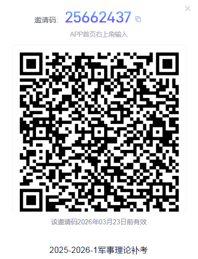 2022级所有《形势与政策》课成绩不合格需要补考、重修、补修的同学,10月30日前通过学习通班级邀请码25613679(在手机APP首页右上角输入)加入班级。
