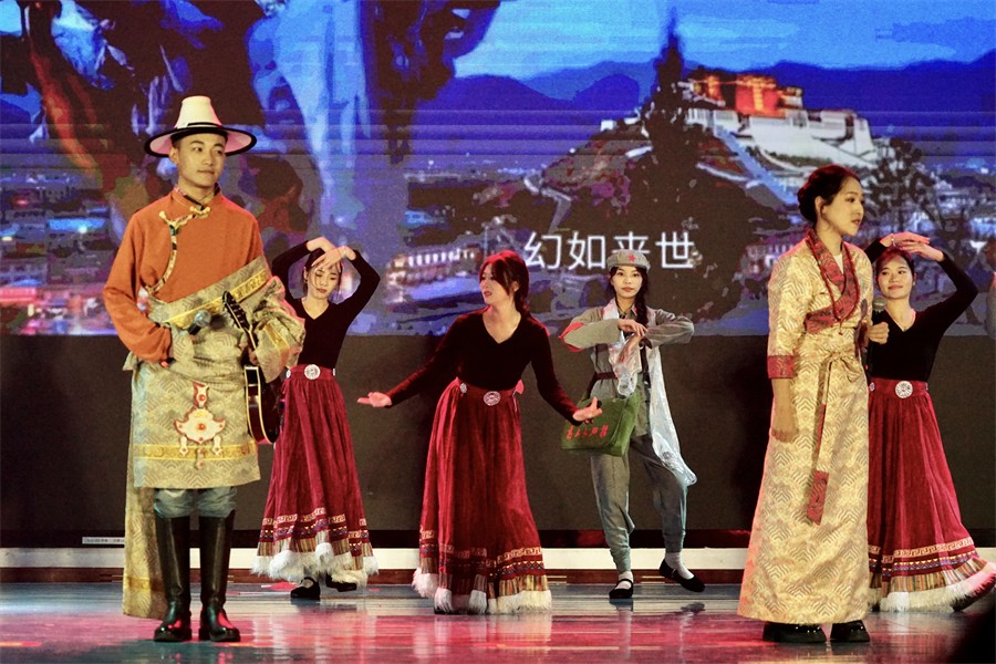 接着,学生们演出了一批红色主题节目:合唱《太行山上》、舞台剧《红绸》、舞蹈《风筝》《雨花石的等待》《离开雷锋的日子》《永不消逝的花》、朗诵《沁园春·长沙/沁园春·雪》《毛主席的光辉照万代》《为有牺牲多壮志》精彩上演,全场师生在享受艺术美的同时,潜移默化中接受了红色精神的洗礼。
