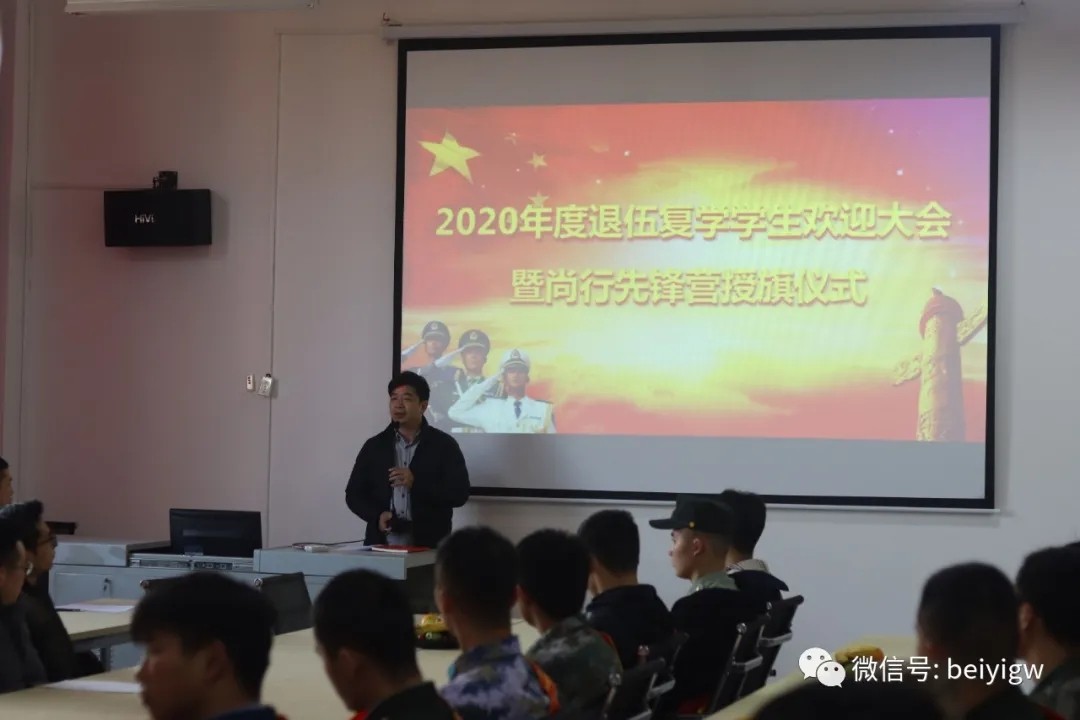 北海艺术设计学院召开2020年度退伍复学学生欢迎大会暨尚行先锋营授旗仪式