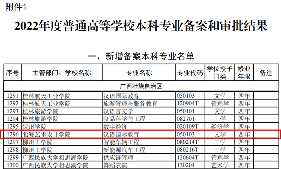 近日,根据《教育部关于公布2022年度普通高等学校本科专业备案和审批结果的通知》(教高函〔2023〕3号),教育部对我校申请备案的汉语国际教育(专业代码050103)专业予以备案。