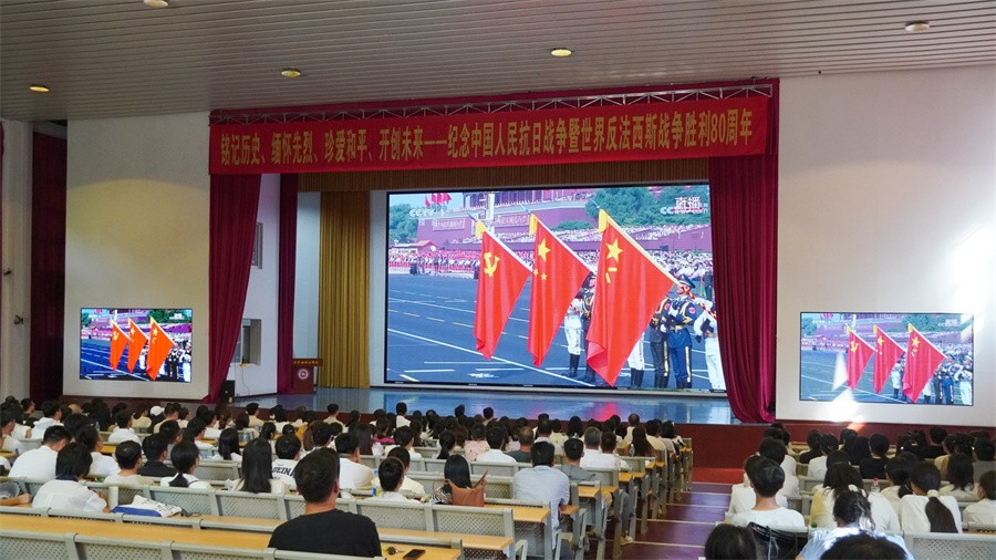 9月3日上午9点,纪念中国人民抗日战争暨世界反法西斯战争胜利80周年大会在北京天安门广场隆重举行。北海艺术设计学院设置集中收看会场,组织学校师生通过电视、网络等多种方式收看大会实况直播,共同感受这一庄严时刻,同上一堂生动珍贵的爱国主义教育课。