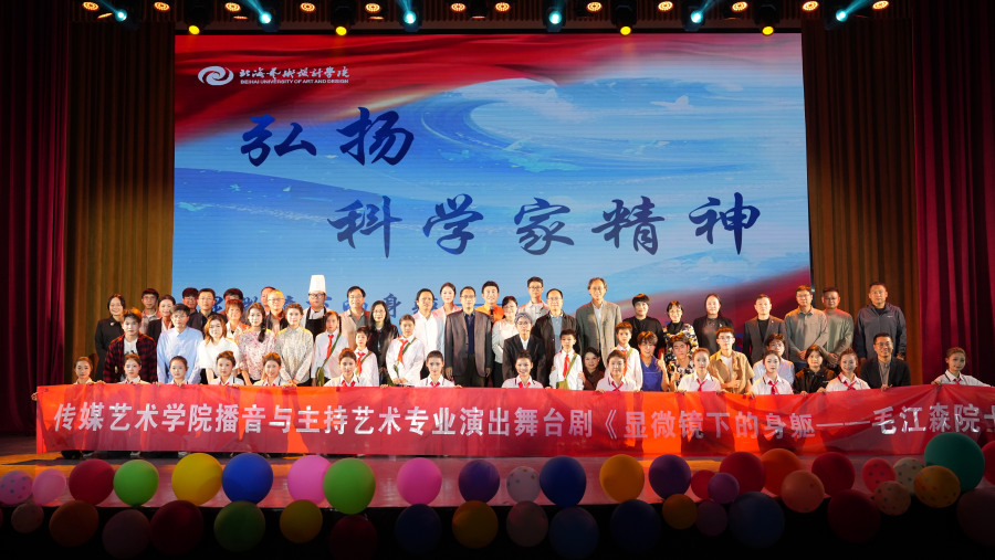 《显微镜下的身躯——毛江森院士》由中国科协等七部委联合宣传关于2025年“科学大师宣传工程”活动中的立项剧目。此次“科学家故事舞台剧”的演出,是自今年四月中旬启动申报以来,传媒艺术学院播音与主持艺术专业的师生们历经重重考验,克服了项目筹备过程中的诸多困难与挑战,最终成功将这部作品呈现在观众面前。该剧以我国著名病毒学家毛江森院士攻克甲肝病毒疫苗的真实事迹为蓝本,通过艺术化的手法精心编排,生动展现了科学家的伟大生平、崇高精神和卓越贡献,让观众在欣赏艺术之美的同时,对科学强国的理念和科学家精神有了更为深刻的认识。