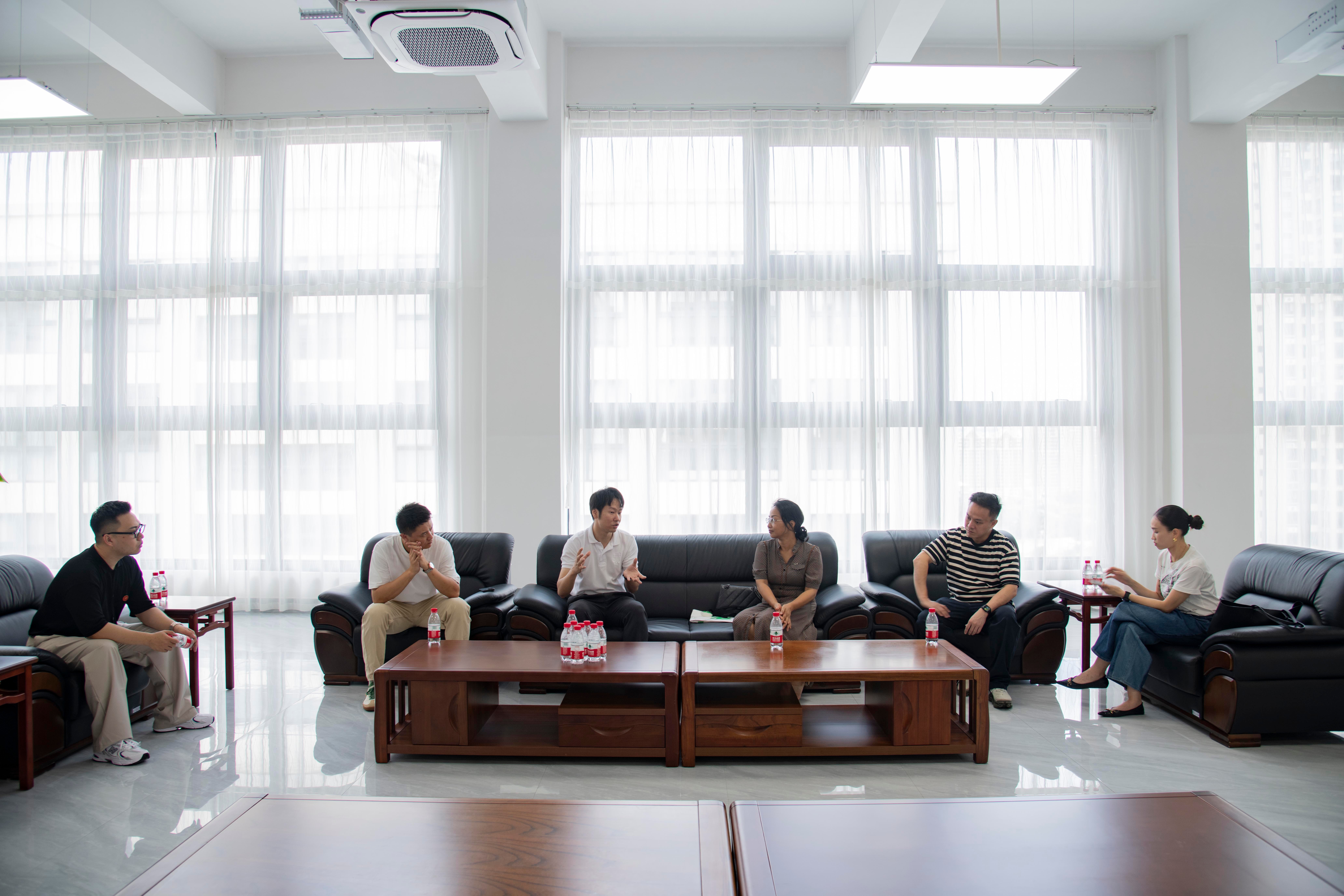 参观结束后,陈丹玲书记和伍岳总经理与学院教师就下一阶段的校地企人才共同培养、学生成果的选品及实际落地制作、设计作品在流下村的二次展出,以及如何将流下村花神节的品牌策划融入下学期课程选题和课程企业实习等具体事宜展开了深入探讨。双方一致认为,未来需持续合作通过多元化的合作模式和创新性的教学方法,提升学生的实践能力和创新能力。