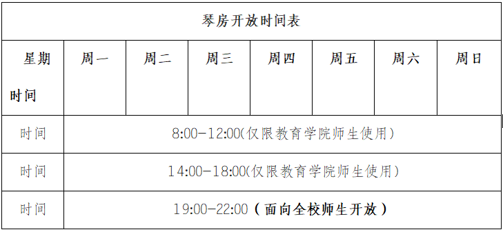 琴房采用 “定时开放 + 预约开放” 相结合的模式,具体时段及开放范围如下: