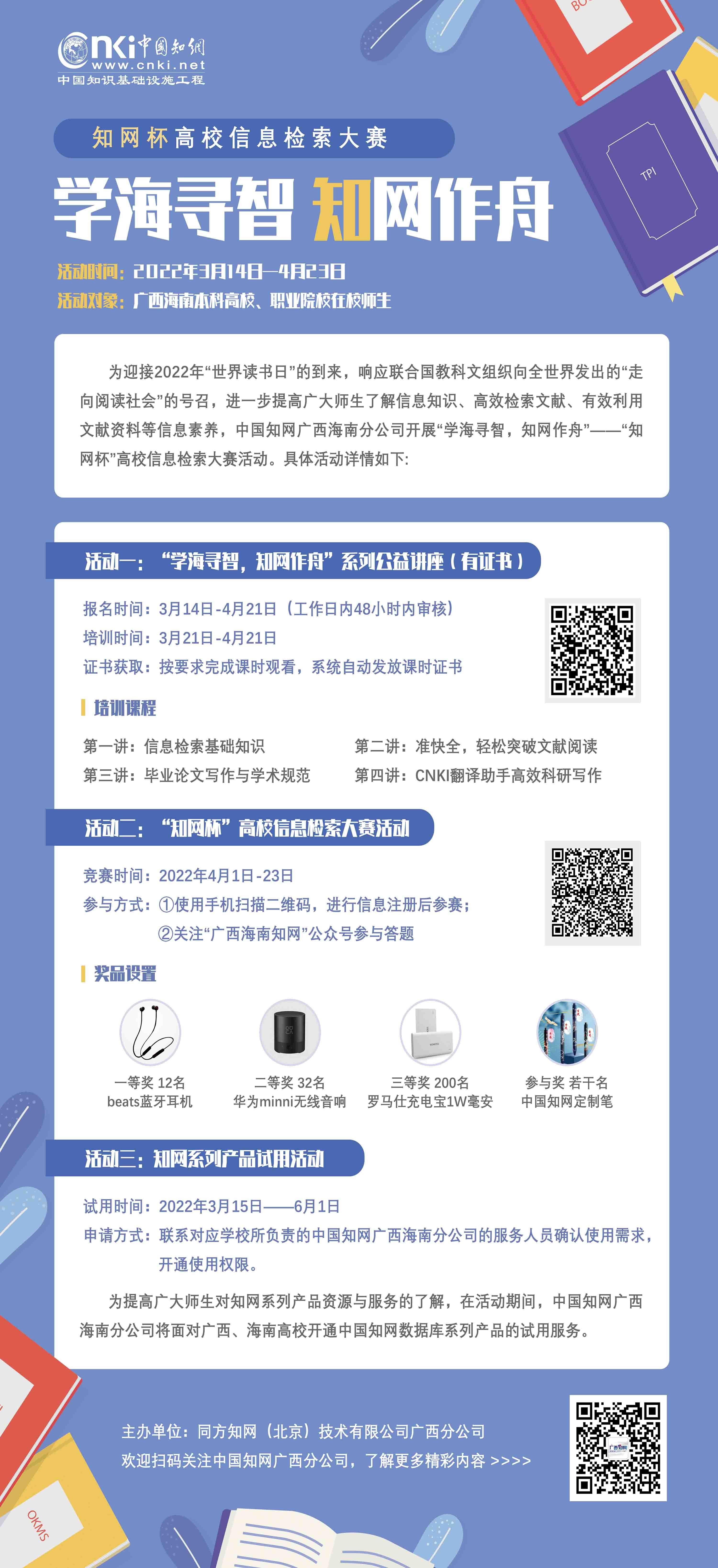 二、“知网杯”高校信息检索大赛,活动形式为线上答题,时间:4月1日-23日。