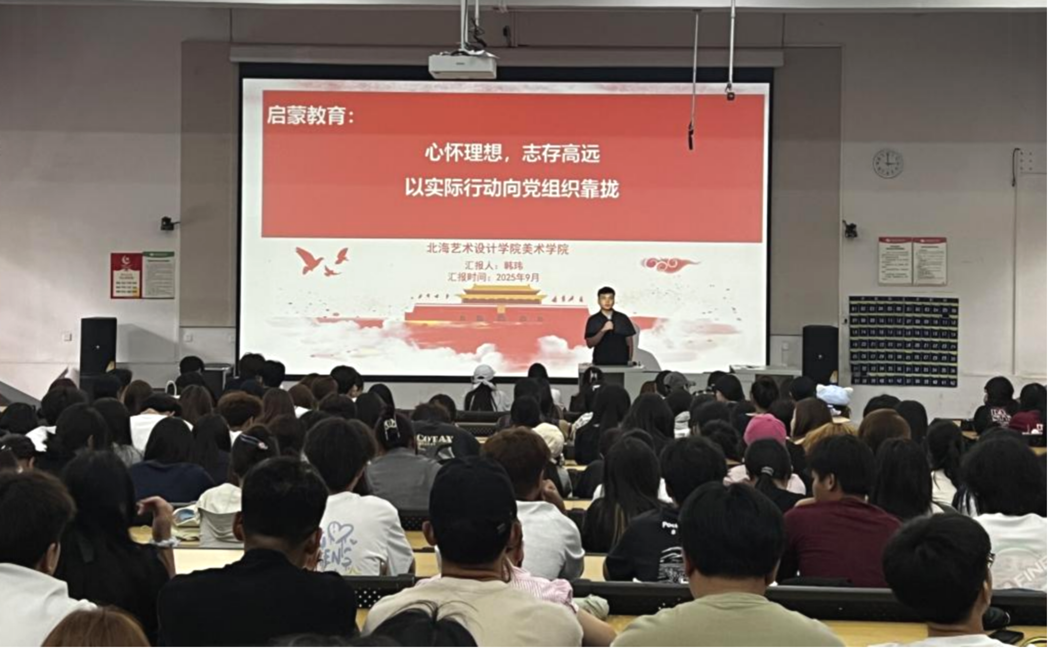 9月10日下午,美术学院在公德楼107开展2025级新生入党启发教育,由美术学院书记韩玮主持,全体2025级新生参加。