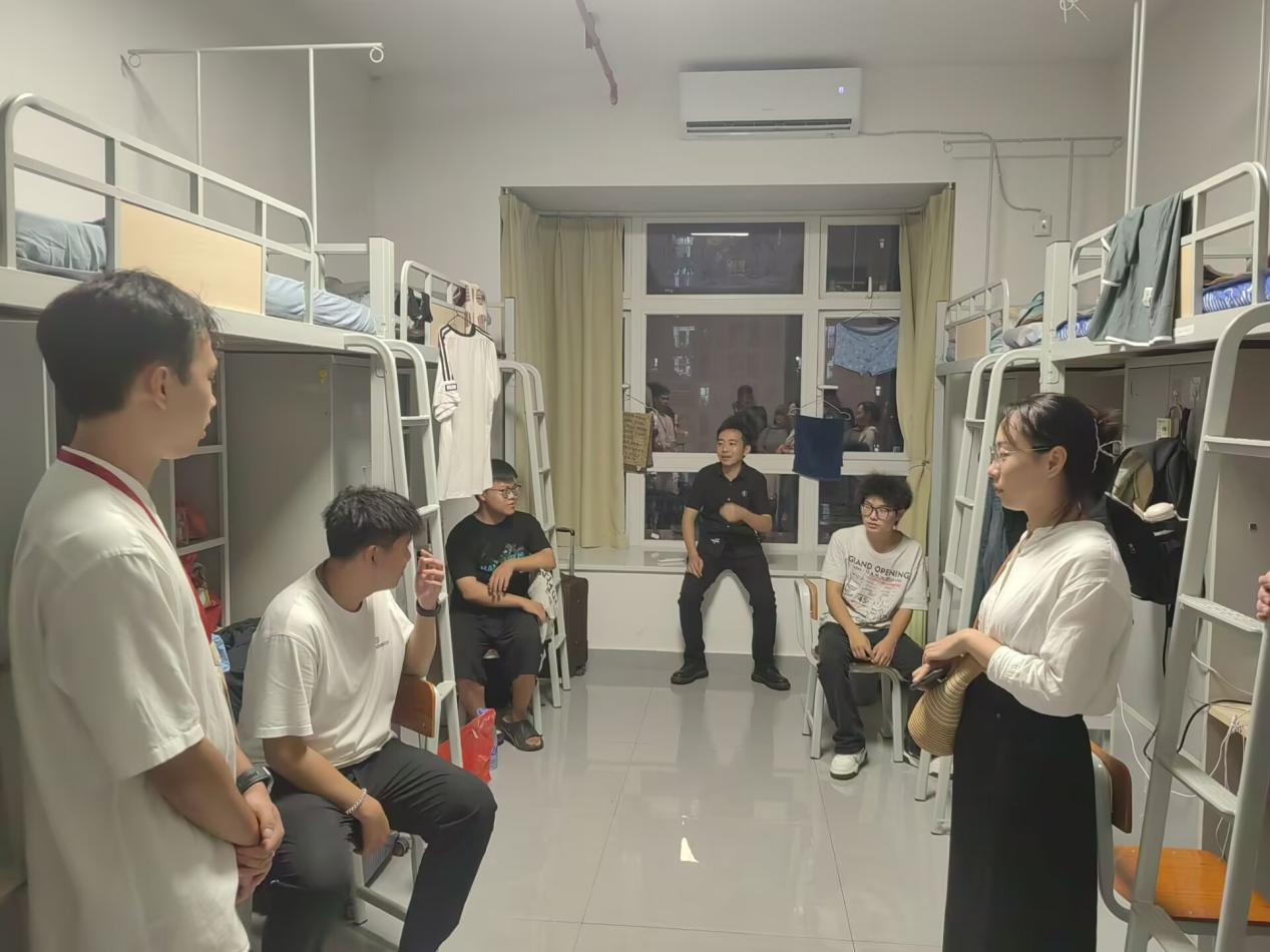 9月7日晚,设计艺术学院党政领导深入新生宿舍走访慰问,与2025级新同学亲切交谈,送去学校的关怀与祝福,学工办负责人及2025级全体辅导员参与。