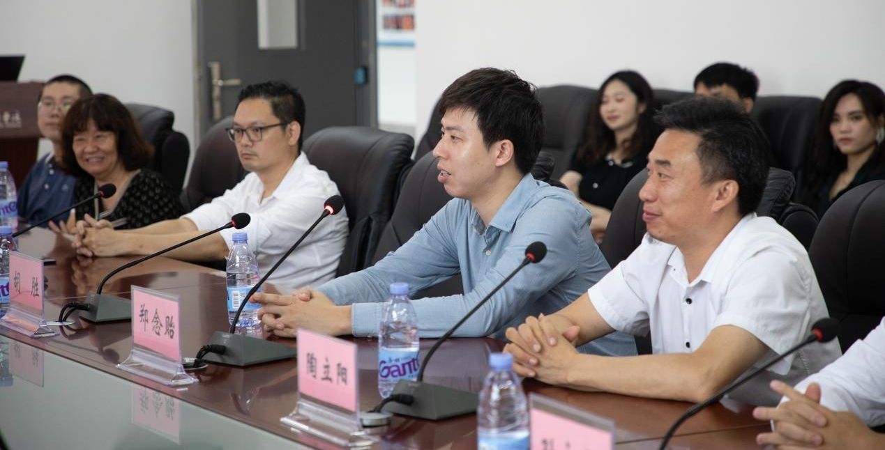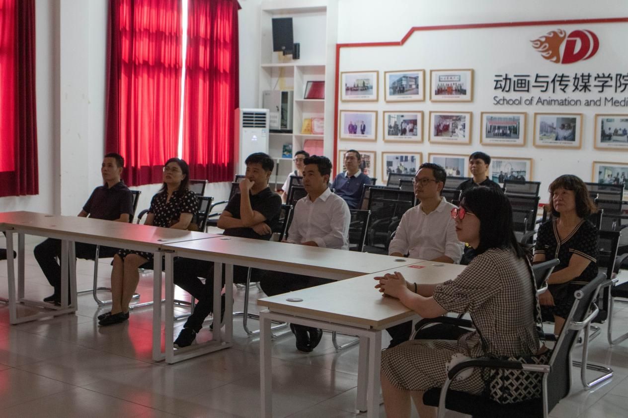 2022年6月21日下午,北海龙腾半岛网络技术有限公司黄全庆总经理等一行莅临北海艺术设计学院参观交流,并在西校区图书馆二楼举办座谈会。学校董事长郑念贻、副校长陶立阳、动画与传媒学院院长庞定坤、党委书记孙永辉等院领导参加了本次座谈会。