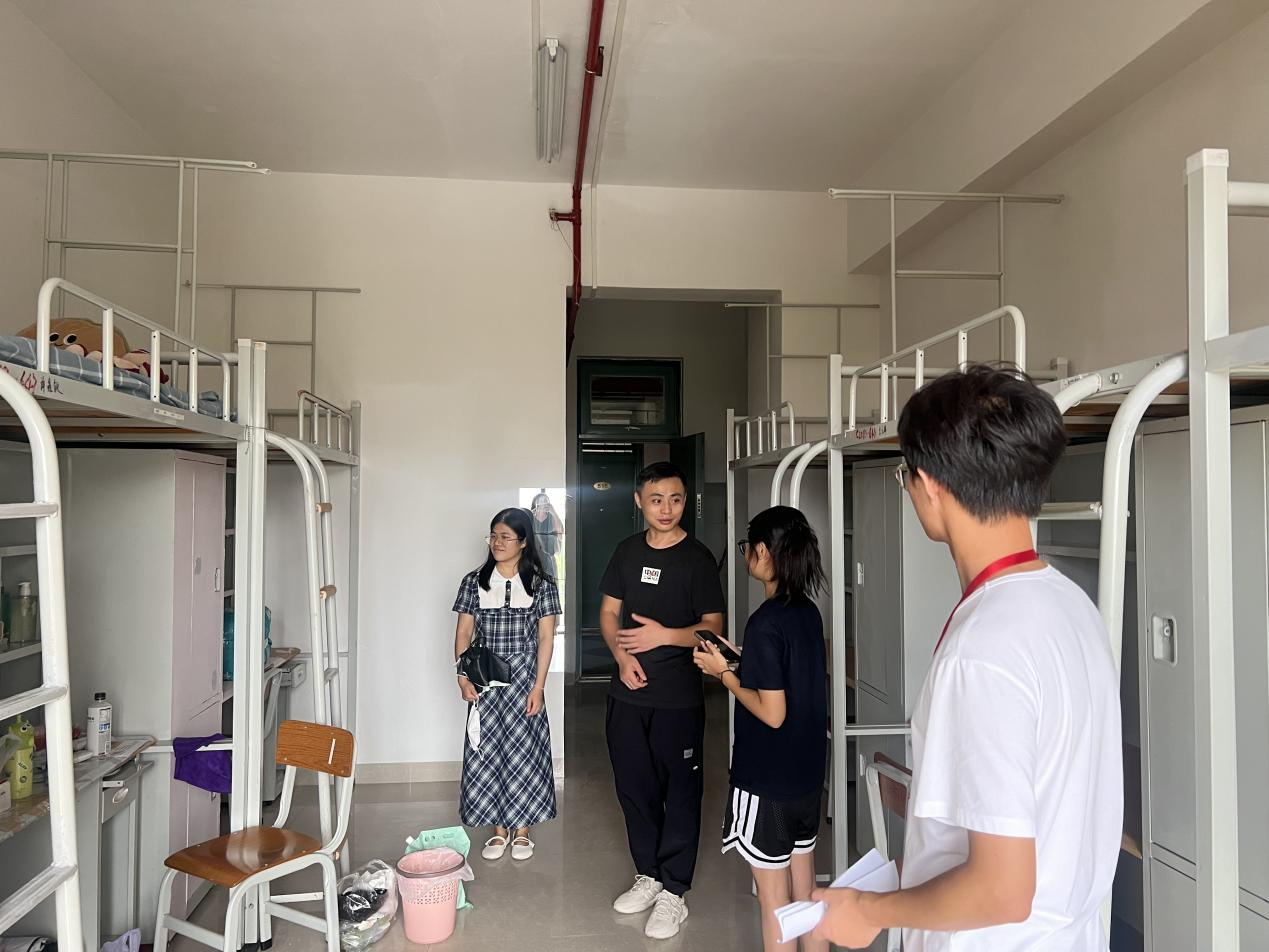 9月4日至5日,李水亮副院长一行走访了2022级和2023级学生宿舍。在走访过程中,学院领导和各年级辅导员仔细检查学生宿舍安全卫生情况,并细心询问同学们的新学期学习计划,叮嘱大家新学期要尽快调整状态,合理安排时间,劳逸结合,保持健康的学习生活习惯,严格遵守学校各项规章制度,共同创造安全健康的宿舍环境。同时,提醒同学们要注意近期的台风天气,做好雷雨天宿舍防水断电工作,减少雨天外出,确保个人生命安全最后,学院领导希望同学们在宿舍里能常沟通,多包容,相互帮助,共同成长。