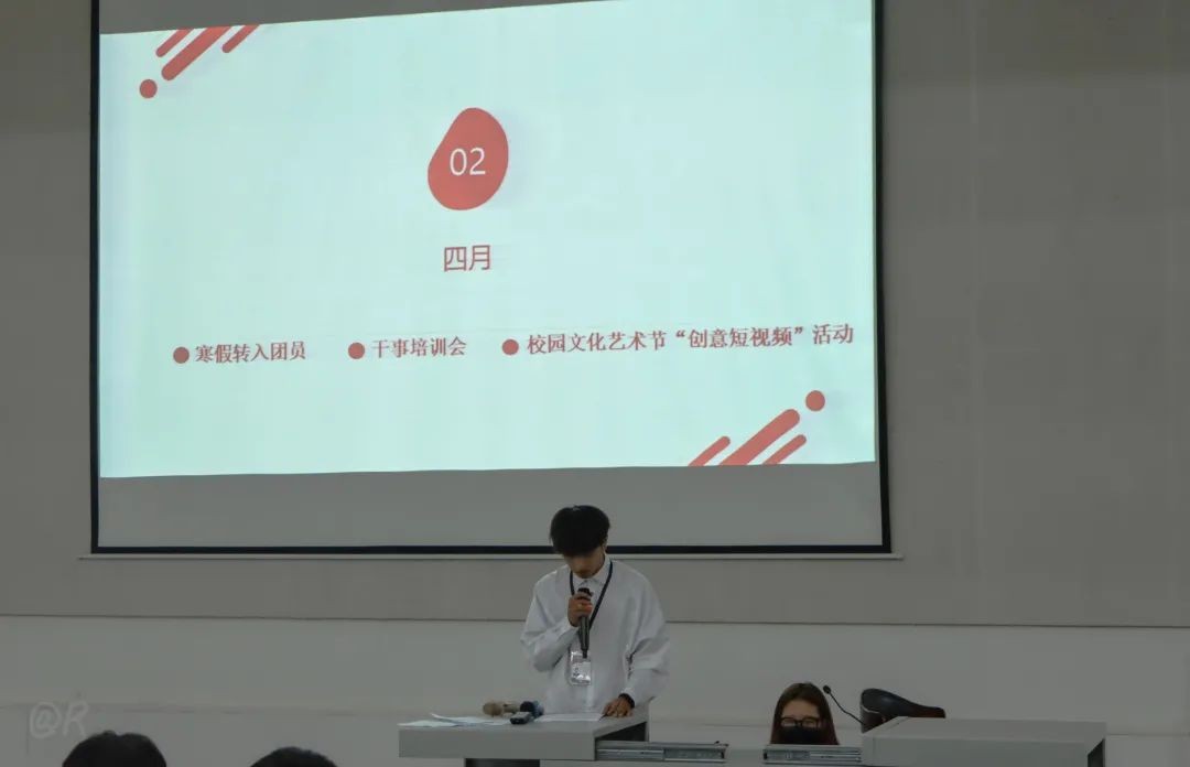 外联实践部成员王镜然主讲本学期部门工作总结。从各个方面对本学期部门负责的一系列工作做了回顾总结,并表示在接下来工作的过程中汲取教训,予以改正,以最饱满的热情以及认真的态度投入到往后的工作中去。