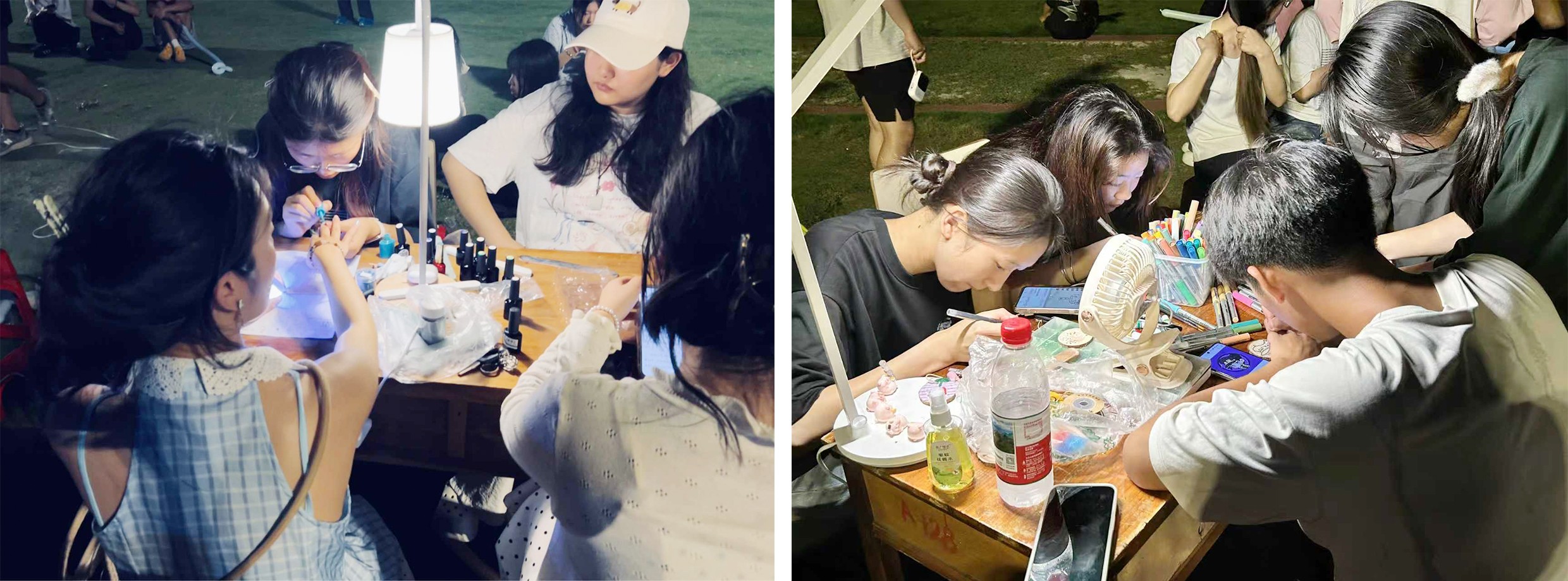在活动筹备阶段,各个班级通过抽签的方式,确定了各自负责的摊位。此次共设置了32个摊位,涵盖美甲、穴位按摩、编发、眼镜清洗、气球造型、创意年轮、拓印、香囊等。在这两天的活动里,各个摊位前都围满了人,现场一片热闹景象。同学们热情满满地投入到志愿服务当中,凭借自身专业技能和创意,为全校师生带来了丰富多样的服务体验。