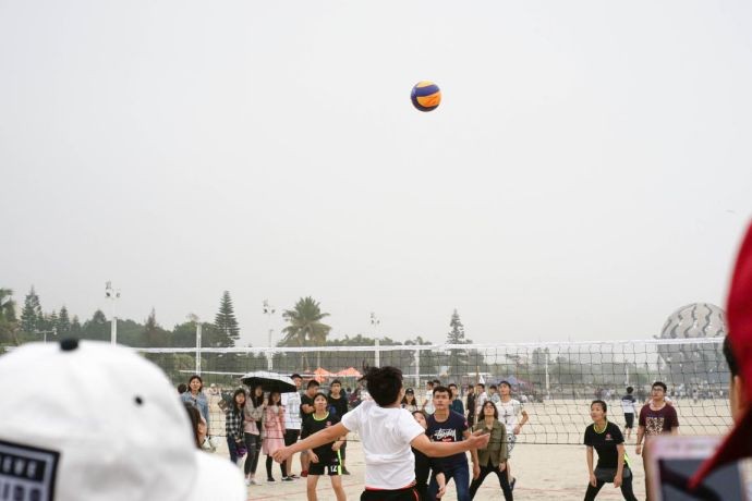 其它的比赛项目也引人注目,排球比赛。一个小小的排球,牵动了无数人的心,落地瞬间决定分数所属。八人九足,红绳绑住的不止是双腿,还有每个人的配合,团结一心,冲到终点。