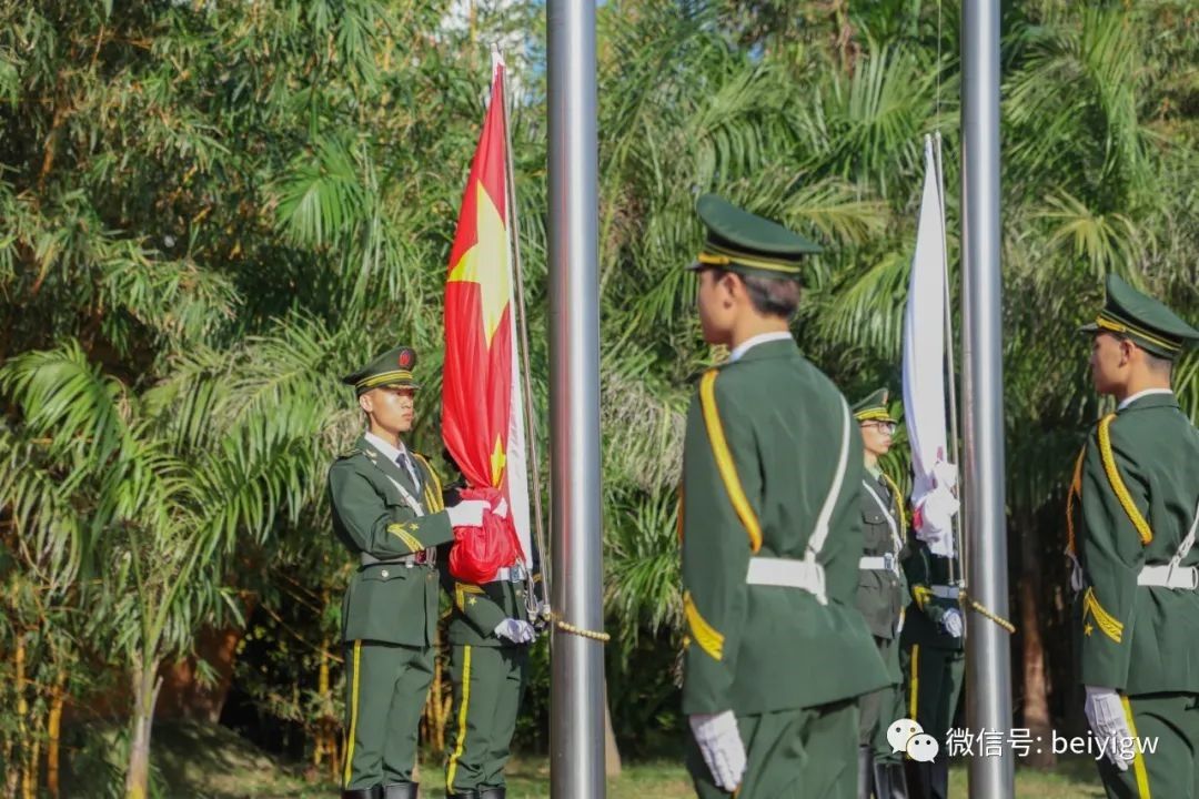 金秋十月,缘聚北艺。10月12日上午,北海艺术设计学院在西校区田径场举行2021年开学典礼。北海市委教育工委专职副书记黄毅、北海市高等教育管理服务办公室主任包建明、清华大学学术委员会副主任李当岐教授,学校领导卢新华、贺争平、彭仁、韦静月、陶立阳、黄侃明、郑念贻、刘朝雄及全校一万多名师生一同参加了典礼。典礼由校党委书记张阳主持。庄严雄壮的国歌声响彻校园,开学典礼在升旗仪式中拉开序幕。