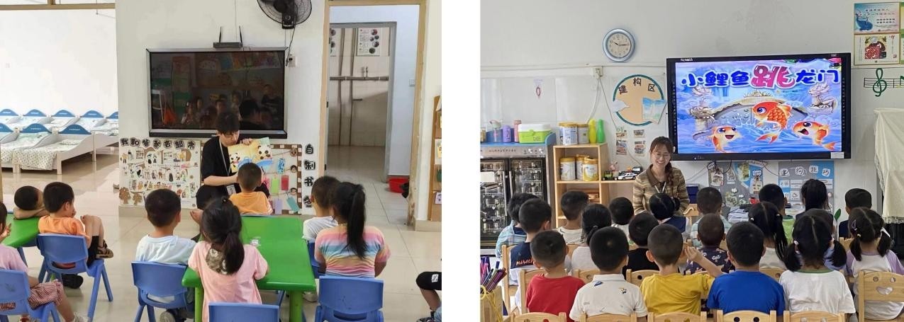 2201班陈婷影与幼儿阅读绘本                                                                          2201班高欣雨组织教学活动