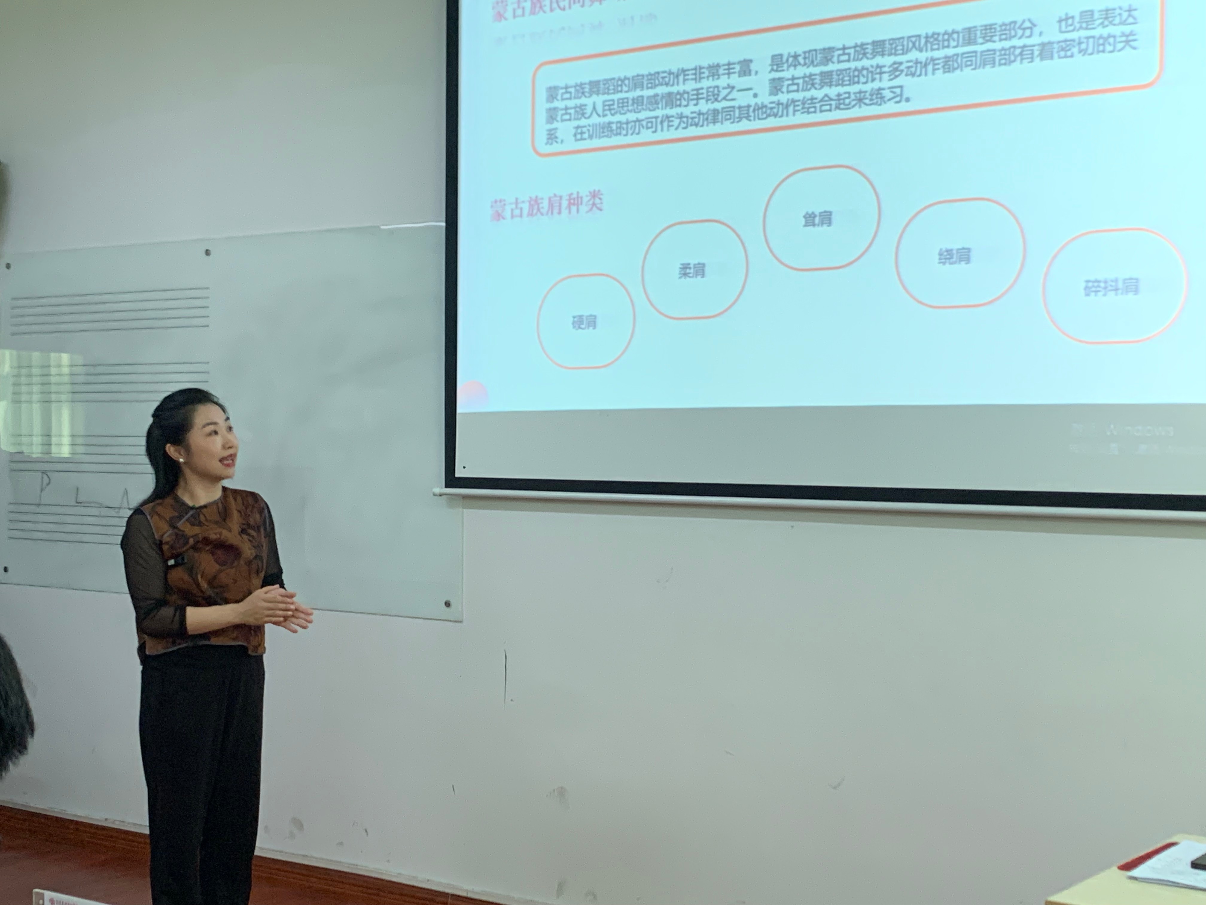 二号选手翁梦蕾老师上了一堂精彩的多舞种教学课,讲解了蒙族舞蹈基训《如何正确使用肌肉发力方法》。翁老师通过规范的舞蹈动作、专业的舞蹈术语细致地讲解蒙古族的民族文化与民族风情,强调每一个动作的准确性,让同学们感受肌肉发力和延伸的过程。