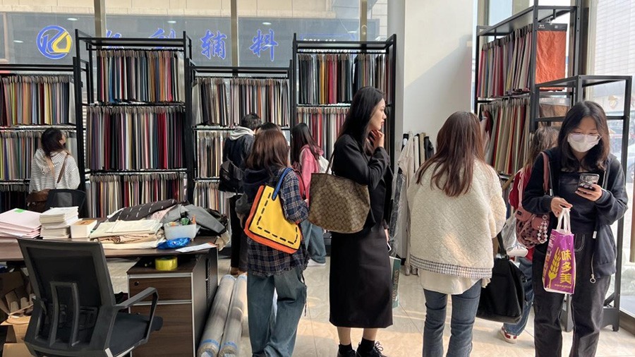 在面料选取与服装品牌调研过程中,同学们切身体会到上千种不同面材料的肌理与变化,领略到中国服装的美及云裳小镇独特的文化底蕴,提高了自己的人文知识素养和审美能力。同学们通过观察、体验、思考、交流等方式搜集了大量信息和资料,启发帮助自己思考当下时装的面料流行趋势及审美趋势。