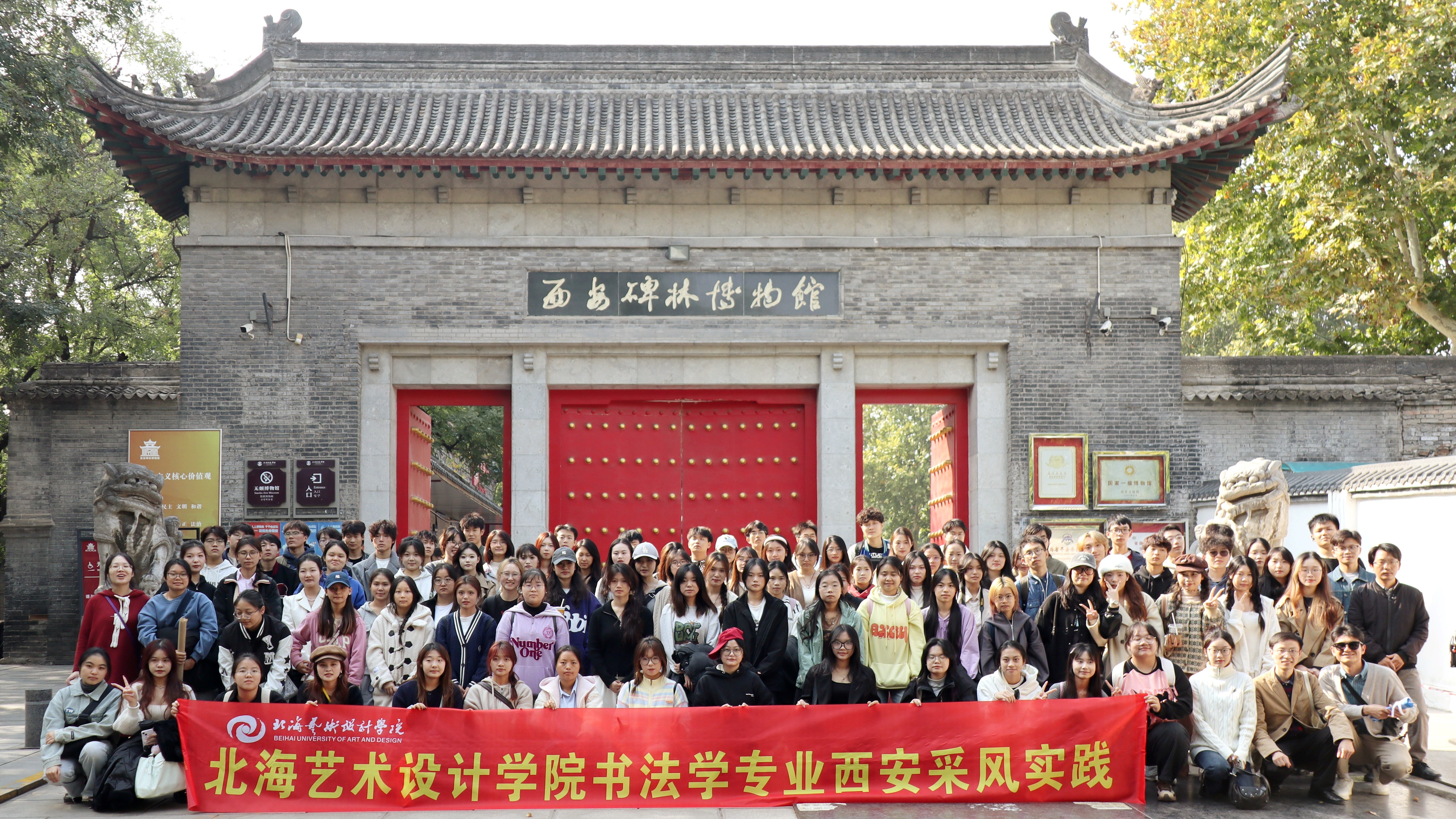 20241022-28日,北海艺术设计学院书法学院书法学专业2023全体学生赴陕西省西安市开展我院《专业采风》课程的实践教学活动。本次考察由书法学院副院长苏乃从、书记喻广林,以及专业教师胡慧捷、常锦文、张天赋组织带领历时6研学过程中,同学们寻访古迹、参观博物馆、聆听名家讲座,全面领略中国历史文化的源远流长与中国传统艺术的博大精深。