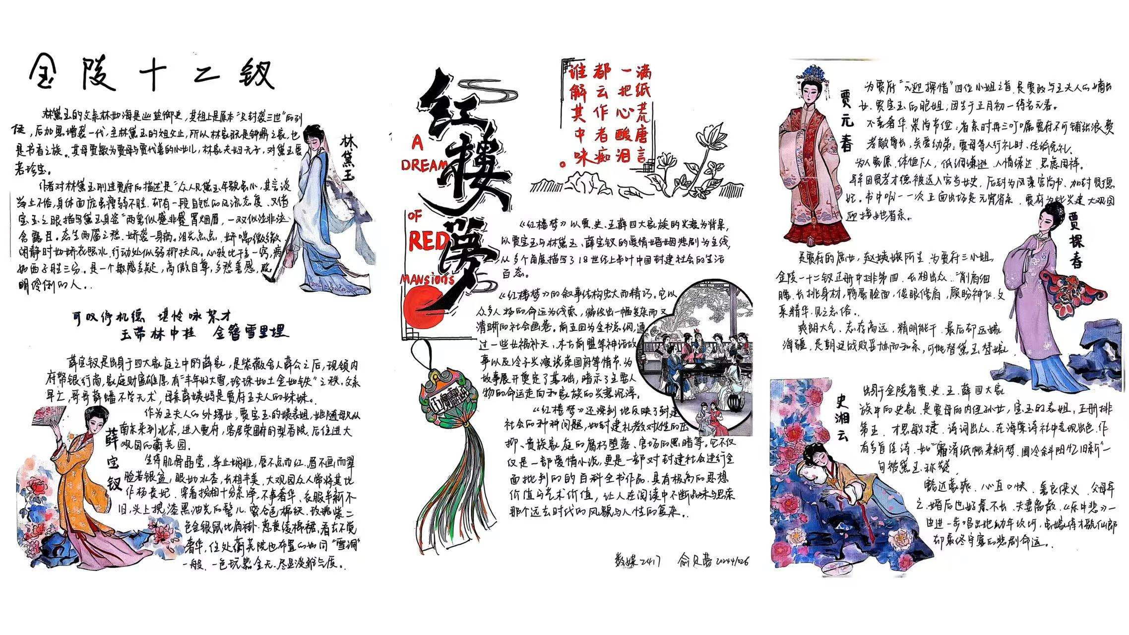本次大赛已构建起“全员参与、全程用心、全面展示”的特色育人模式,不仅融入文学院课程体系之中,更是传承中华优秀传统文化的重要载体。大赛将艺术思维与创新意识融入经典解读,实现跨学科融合创新。文学院以四大名著读书笔记大赛为抓手,引导学生深入研读经典,传承中华优秀传统文化,形成独立思考的学术品格,培养具有深厚人文底蕴的人才。以下是部分优秀作品展示: