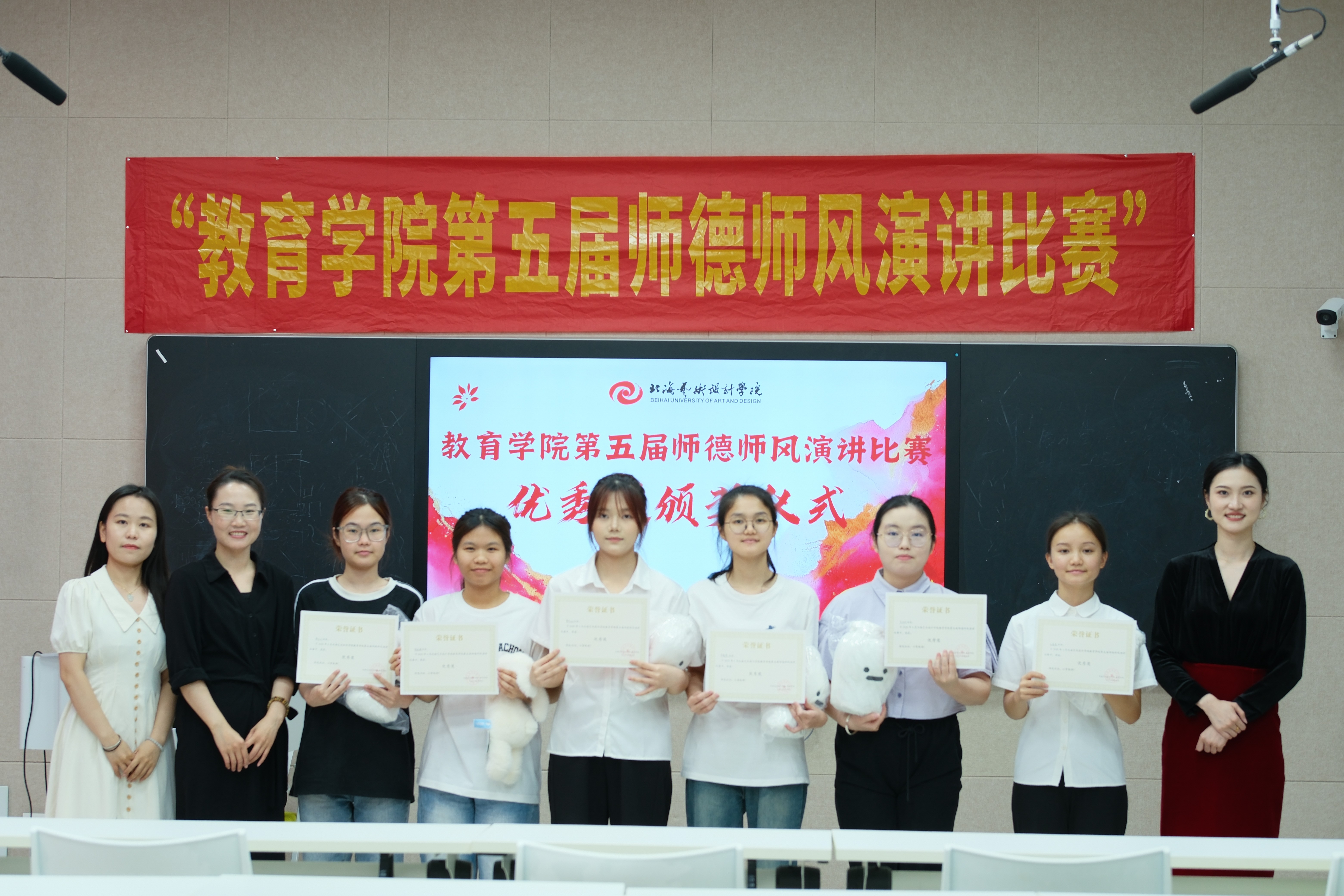 评委老师为获得优秀奖的李玥欣、王孟君、黄宝仪、何丽琪、李智燕、覃贞灿颁奖