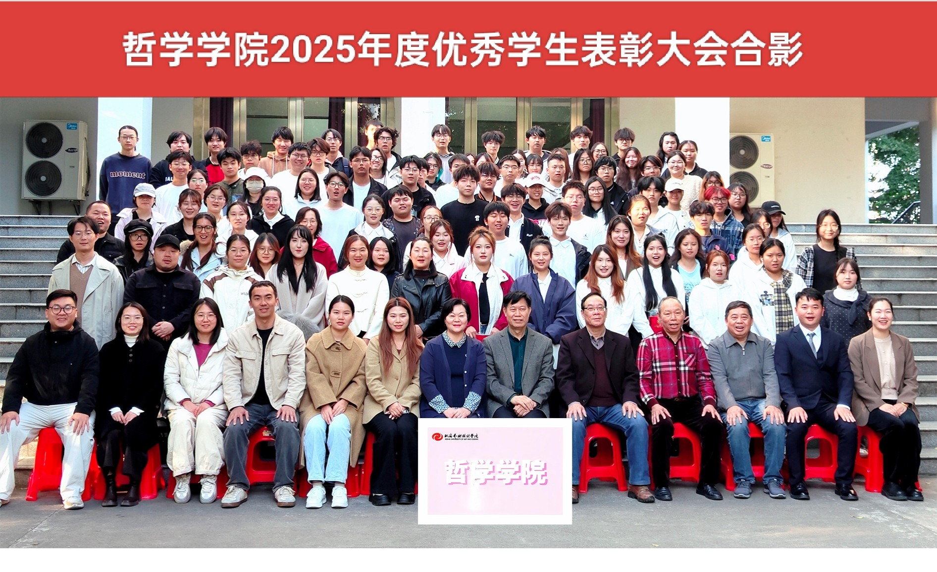 2026年1月12日下午,哲学学院在西区伦理楼107教室举行2025年度优秀学生表彰大会,对过去一年在各方面表现突出的优秀学生和先进集体进行集中表彰。大会以"表彰先进、凝聚人心、鼓舞斗志"为宗旨,旨在树立榜样,激励全院学生奋发向上。哲学学院院长蒙绍荣、党支部书记谢伟、副院长覃传茵、副院长梁兵、部分外聘教授代表出席大会。大会由哲学专业2402班孙渝莟同学主持,学院全体教师和在校学生参会。