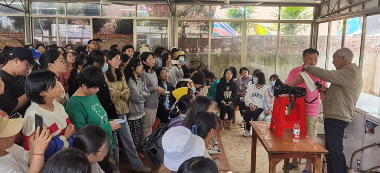 为使艺教专业音乐方向的同学们深入了解涠洲岛的民歌文化,学院邀请了一位九十四岁的退休老教师为同学们讲关于涠洲岛的民歌特色,涠洲岛民歌是当地无数劳动人民在涠洲岛独特的地理条件、历史背景、民俗文化长期浸润下的智慧结晶,表达了当地人民的生活需求和精神文化需求民歌语言朴素自然,具有浓厚的地方特色。热情的陈爷爷在即将分别之际还为同学们唱了一首《敖包相会》,让同学们感受到了其他地区不同的民歌艺术。此外,同学们还采访了另一位岛内居民,询问涠洲岛民歌的相关问题了解到在现代都市文化冲击下,岛上的民歌传承发展式微,面临着严峻的考验。而在今年十一月会举办三年一度的妈祖文化旅游节,将是一场精彩纷呈的文化盛宴,那些鲜为人知的当地特色民歌民俗将会再现。