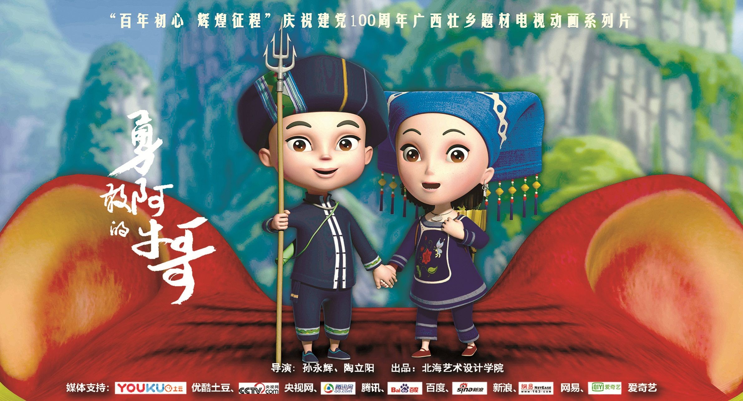 影片主要讲述勇敢的壮乡传奇人物“阿牛哥”为了守护村寨与黑恶势力“桂虎”斗智斗勇保护壮乡的故事,内容饱含了丰富的壮族传统民族文化和地域特征,体现了文明、和谐等社会主义核心价值观精神。影片同时将壮乡少数民族文化与地方旅游产业结合,积极开展文旅产品及创意衍生品的策划和研发,取得了突出的成果,有力地促进了优秀传统文化的传播,也为我校动画项目创作课程教学实践与创作打下了坚实的基础。