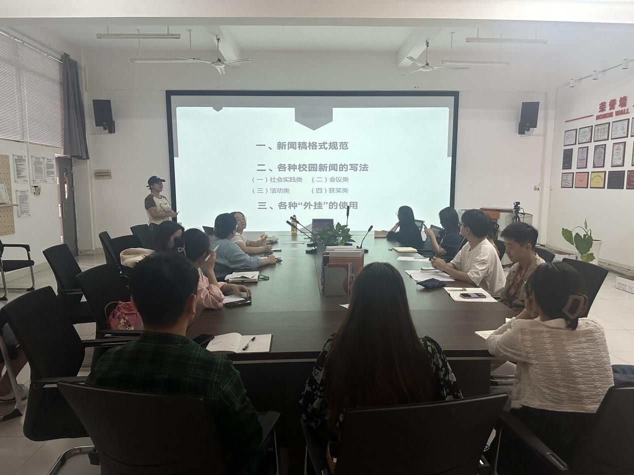 为推动动画与传媒学院新闻宣传队伍建设,适应新形势、讲好新故事,提升学院新闻宣传队伍的专业水平和整体素养,促进学院宣传工作再上新台阶112动画与传媒学院组织开展新闻能力素养专题培训。学院党总支书记张帆、各党支部宣传委员、各部门通讯员参加培训,培训由学院宣传中心龙盈迎主持。