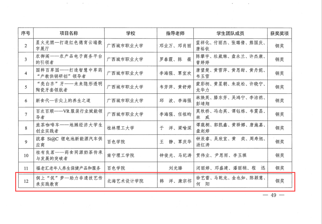 喜报!美术学院师生于 第七届中华职业教育创新创业大赛广西区赛喜获佳绩