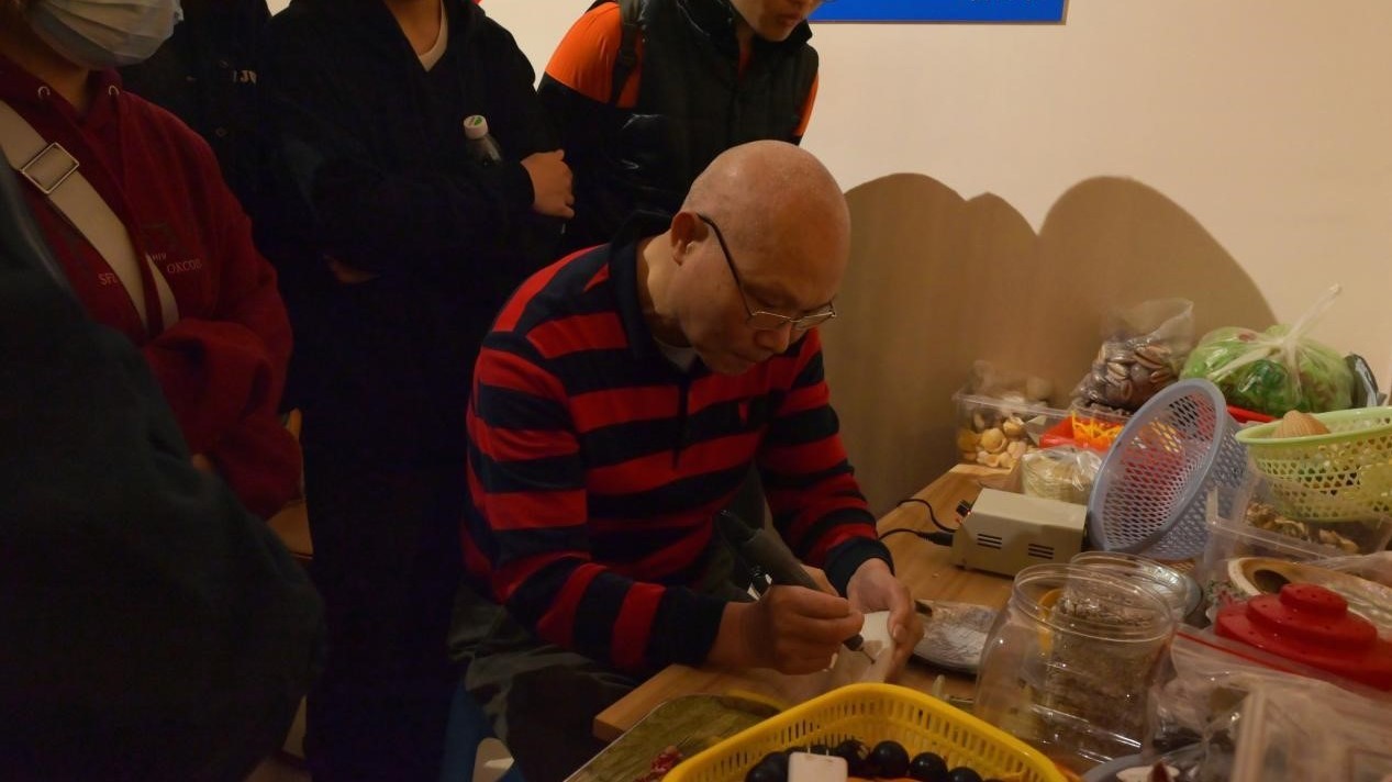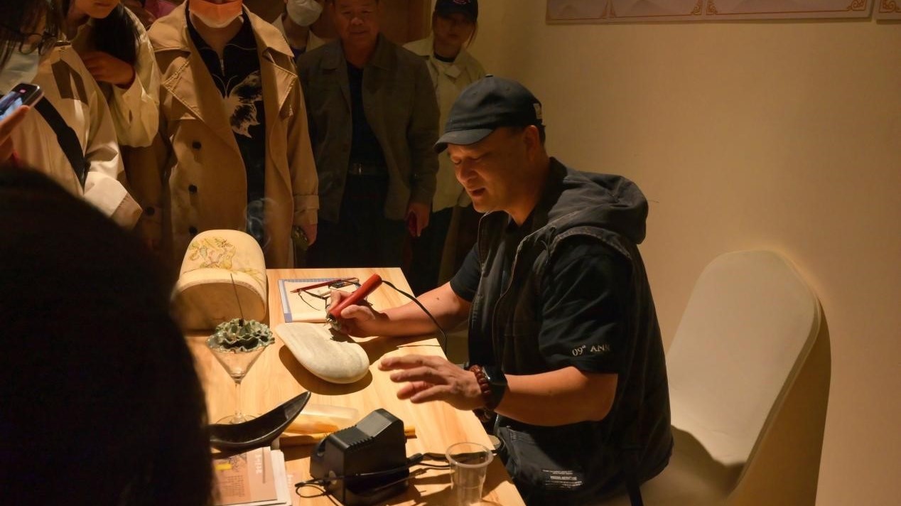 在活动中,白耀华大师向学生们生动地介绍了角雕工艺的历史渊源、制作工艺和艺术特点,并从“有形”与“无形”的角度来解说他的角雕作品《中国梦》。“有形”的是作品中使用牛角特殊材质、各地区的牛角形式与牛角特性,“无形”的是作品所蕴含的文化价值,让学生们深入了解并欣赏到这一传统工艺的魅力。