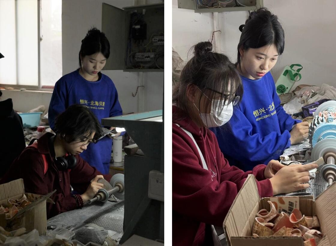 在贝雕博物馆的考察学习中。在博物馆中,学生们不仅参观了博物馆精美的贝雕作品,还亲身体验了贝雕的制作过程。他们从打磨部件到抛光再到组装,亲眼目睹并参与了贝雕的完整制作流程。这样的体验使他们更加深入地了解到贝雕这门古老艺术的精妙之处。